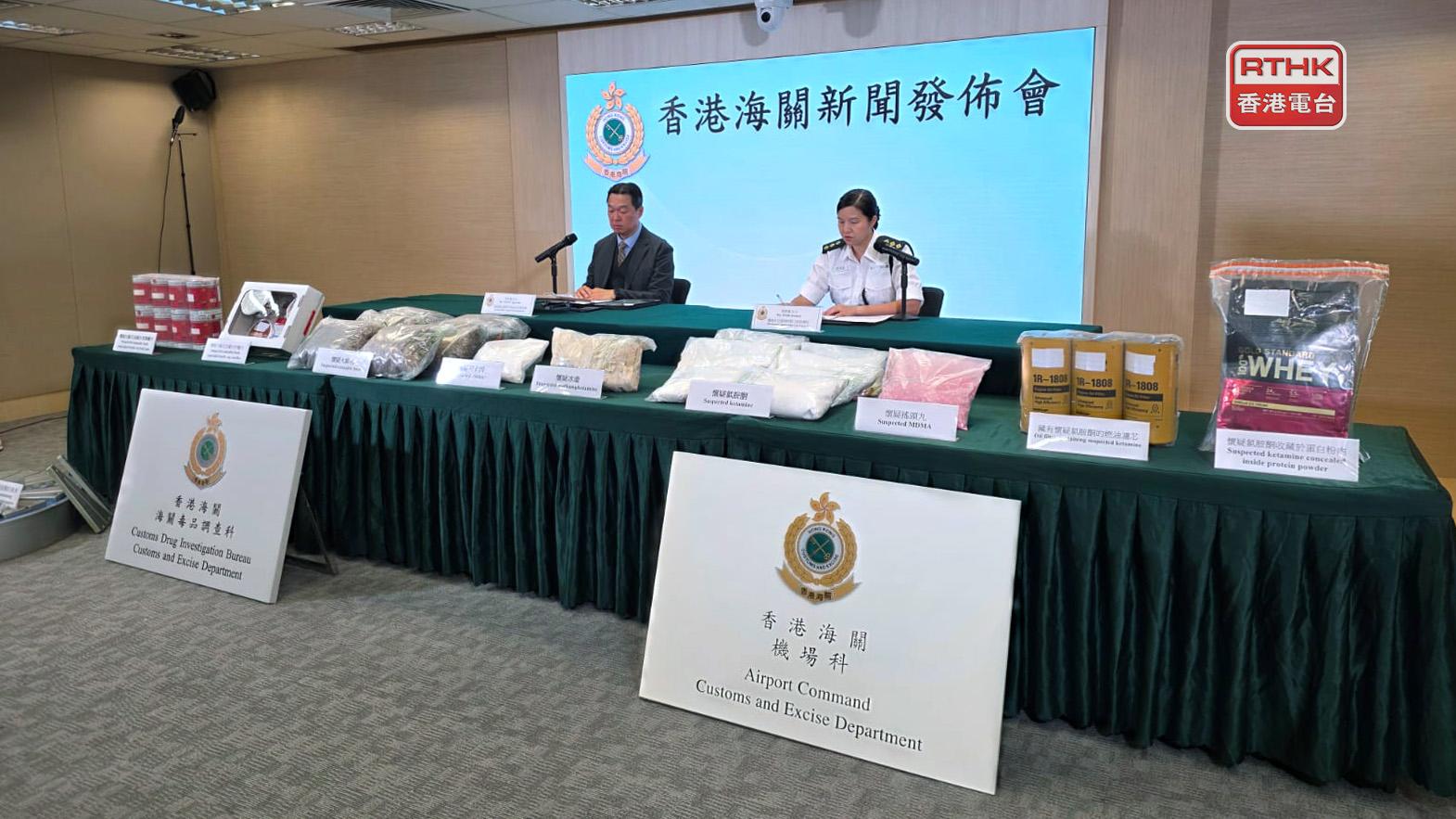 香港海關去年10月至12月在機場進行大型緝毒行動,並與多個内地及海外執法機構合作,打擊不法分子利用航空渠道販毒,合共偵破183宗案件,檢獲約1.4噸懷疑毒品,市值約4.3億港元,拘捕62人。
