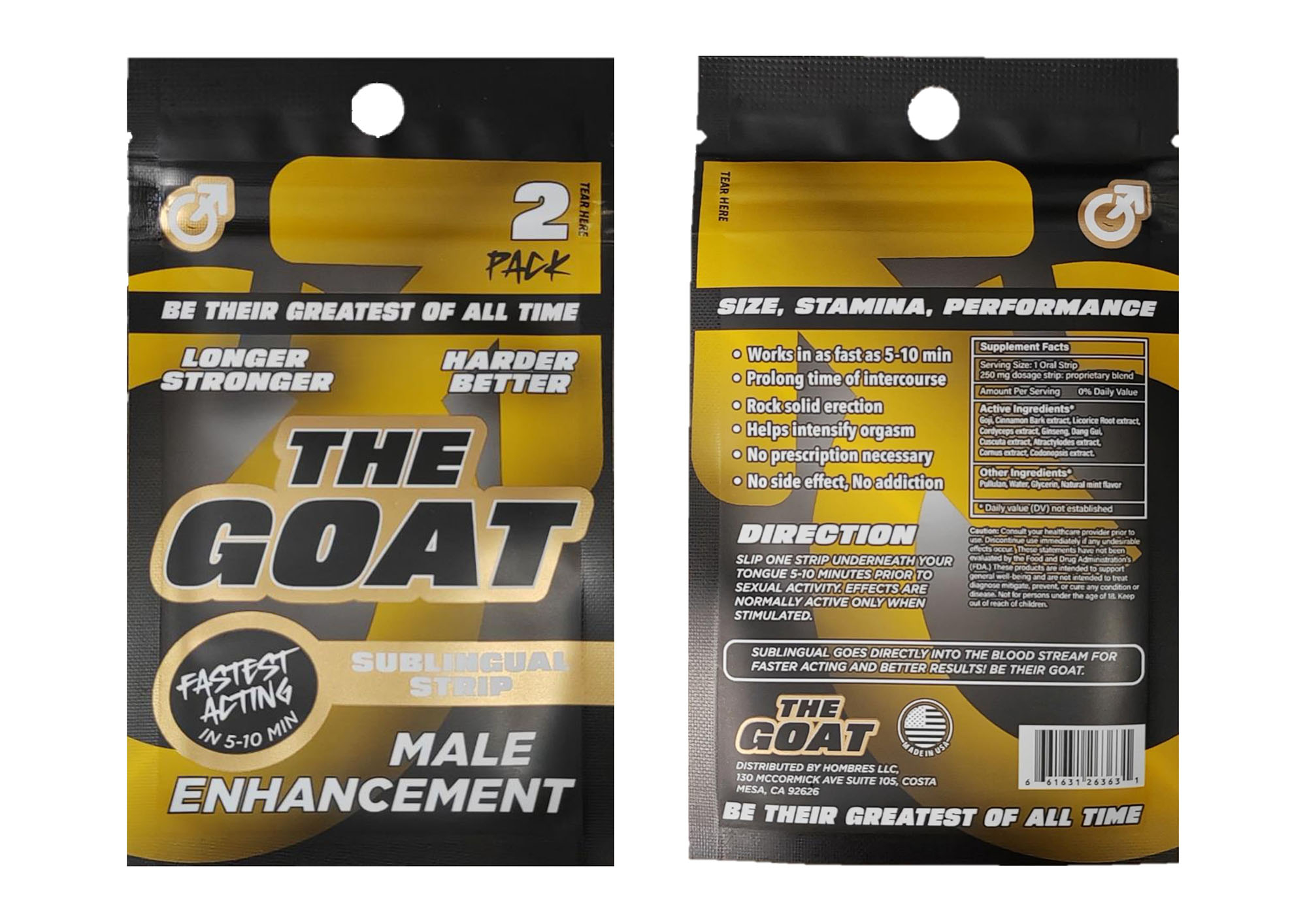 署方早前跟進一宗投訴,透過即時通訊軟件購買一款名為「The Goat Sublingual Strip」產品樣本,標籤顯示有關產品是天然成份的壯陽口服產品。政府化驗所的檢驗結果顯示,產品樣本含有《藥劑業及毒藥條例》下的第1部毒藥「昔多芬」,而有關產品亦懷疑屬未經註冊藥劑製品。