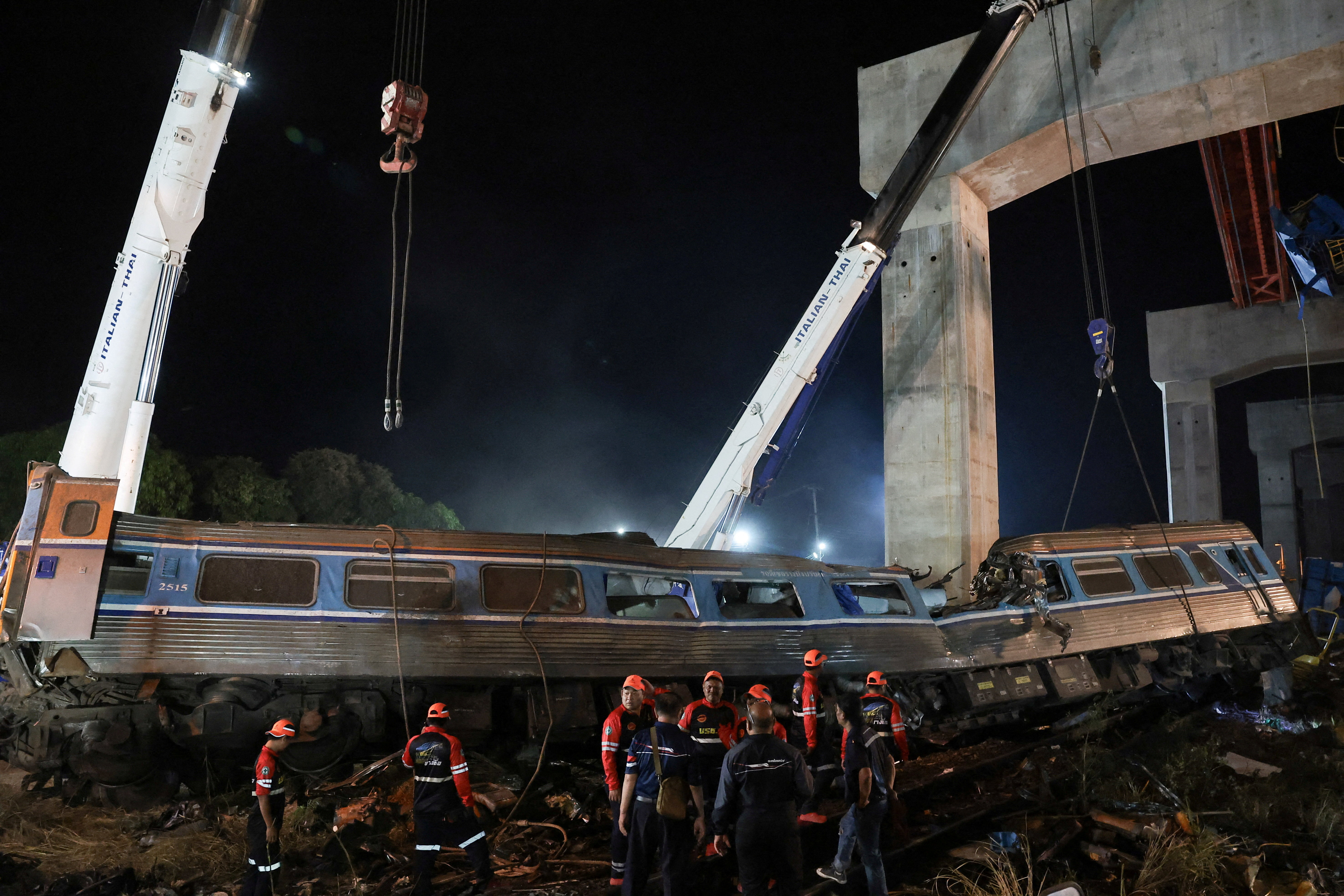 涉事客運列車星期三上午載著195人,原定從首都曼谷開往烏汶府,當駛至呵叻府一處路段時,被一部正在高鐵項目中施工的起重機塌下來擊中。客運列車的部分車廂被起重機擊中起火,冒出大量濃煙,救援人員從嚴重損毀的車廂中救出傷者。