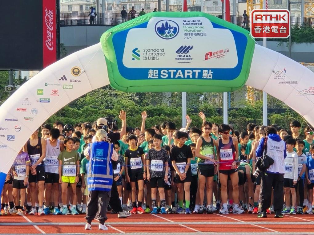 香港馬拉松新增設的「躍動少年跑」,早上在啟德體育園內的啟德青年運動場舉行,超過1千名年齡10至15歲的跑手參加。