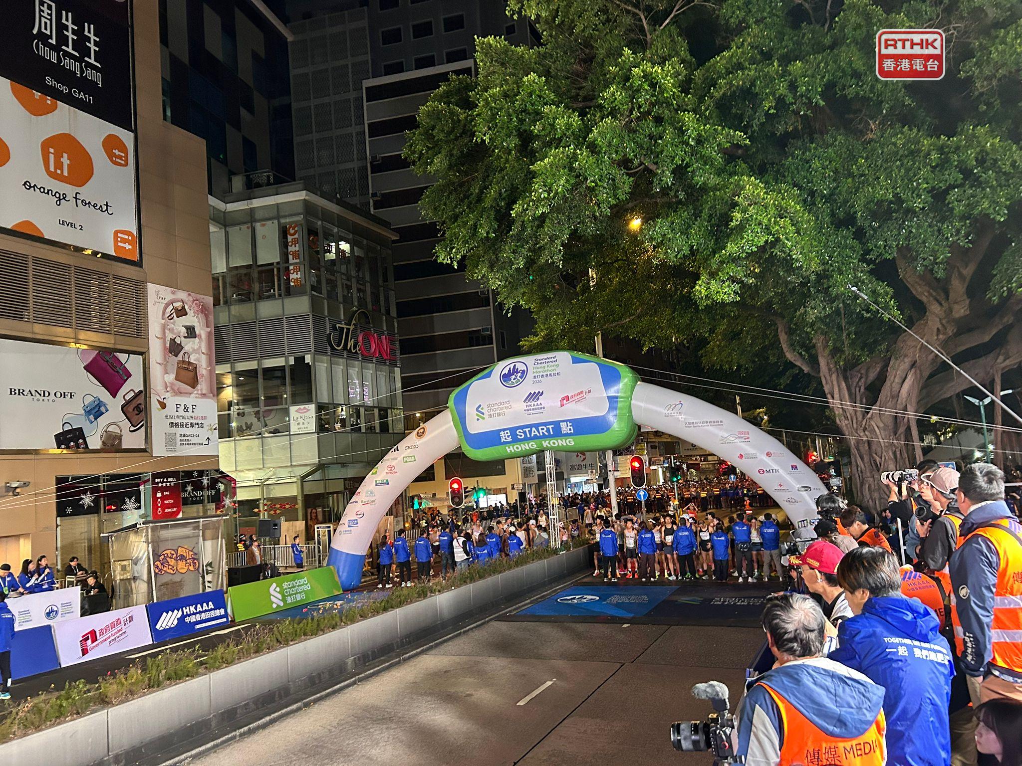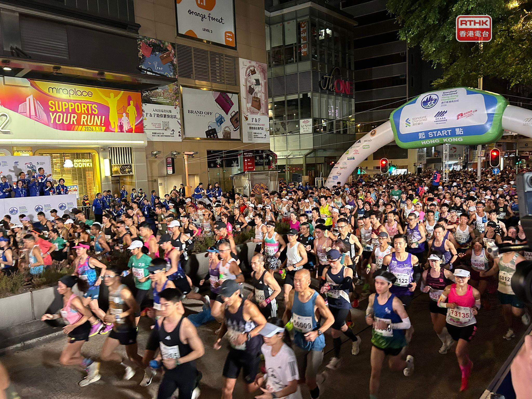 一年一度的香港馬拉松今日舉行,最早出發是的半馬拉松挑戰組及十公里挑戰組,早上5時半分別在尖沙咀彌敦道和港島東區走廊起步。