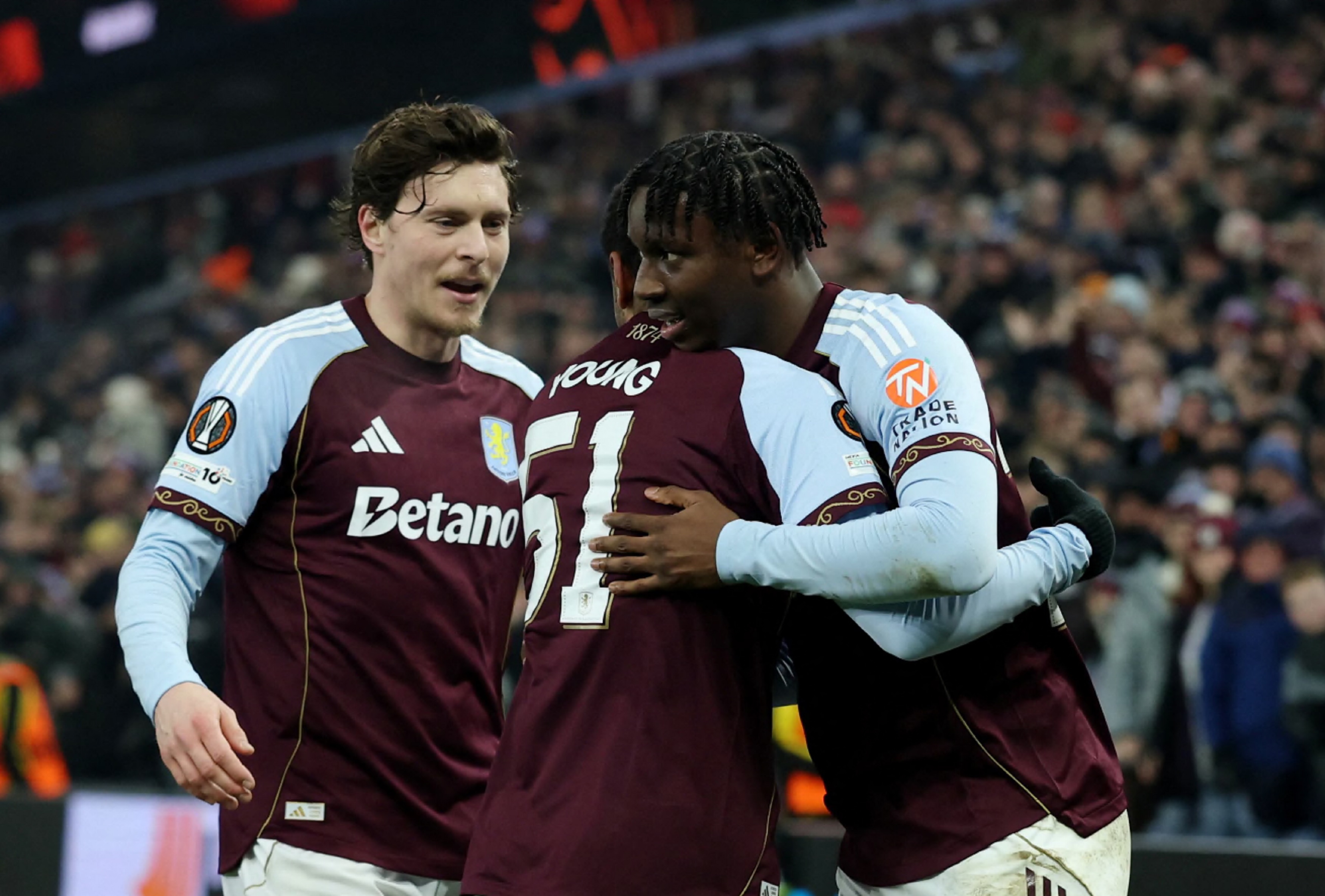 阿士東維拉球員慶祝取得入球。(路透社)