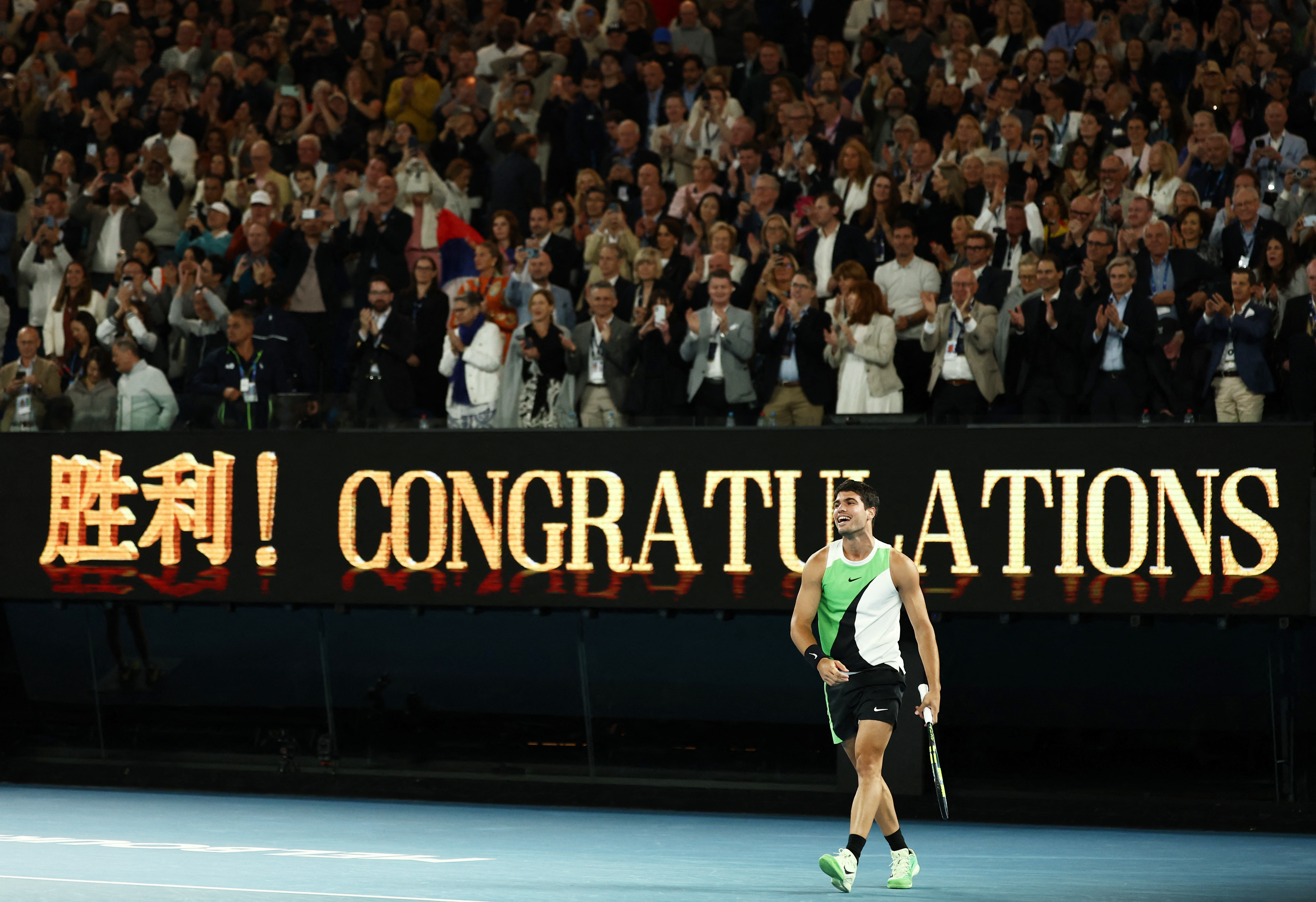 艾卡拉斯以盤數3:1反勝塞爾維亞的祖高域,首次打入澳網決賽就奪冠。(路透社)