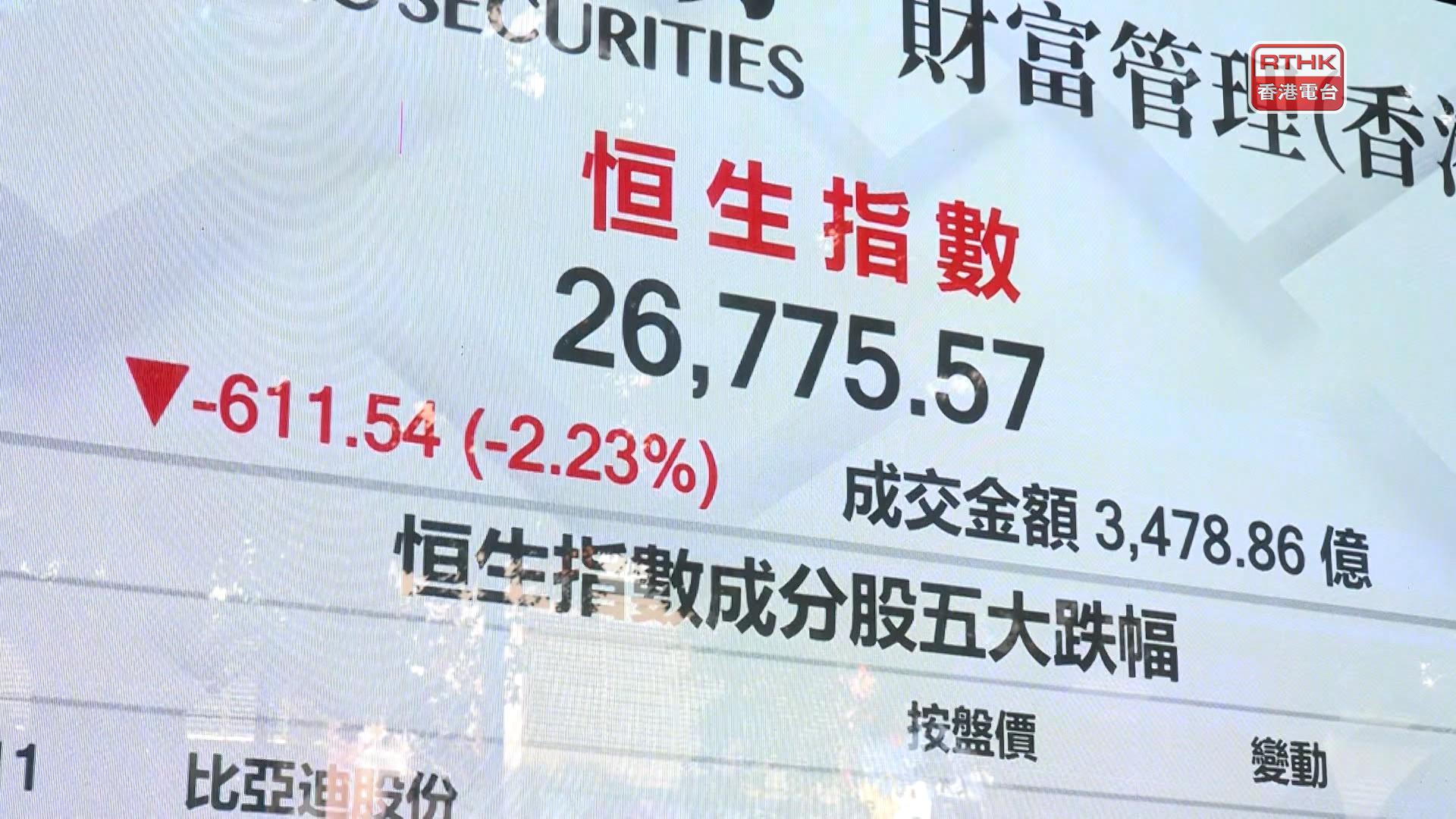 港股2月開局顯著向下,恒生指數失守27000點關口後跌勢加劇,一度跌880點,低見26507點,收市報26775點,跌611點,跌幅2.23%,創1星期新低。主板成交額近3479億元。