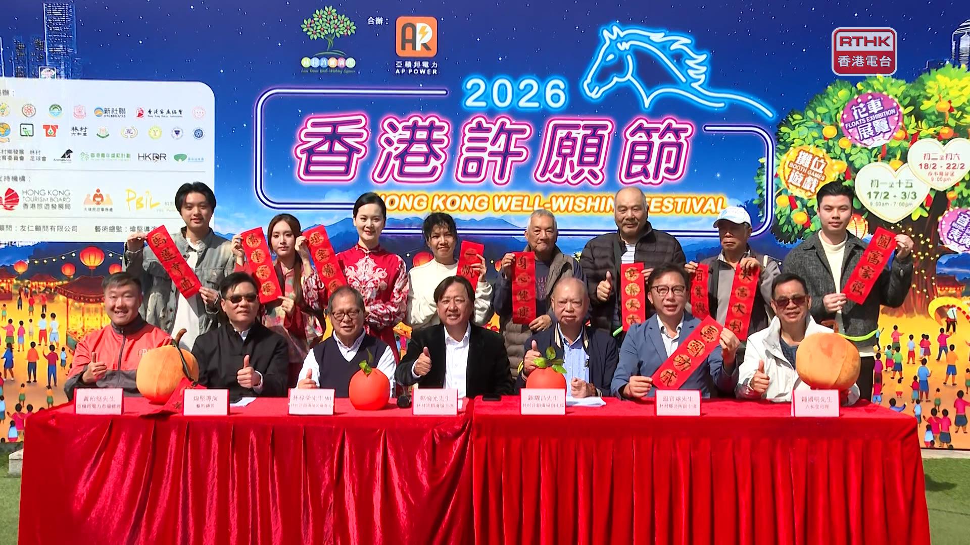 林村許願廣場主席鄭倫光表示,去年許願節錄得30萬人次參與,相信今年在新春花車效應,以及眾多具馬年元素的打卡點,能吸引更多市民及旅客到訪。至於許願寶碟的價錢就與去年一樣,每個50元。