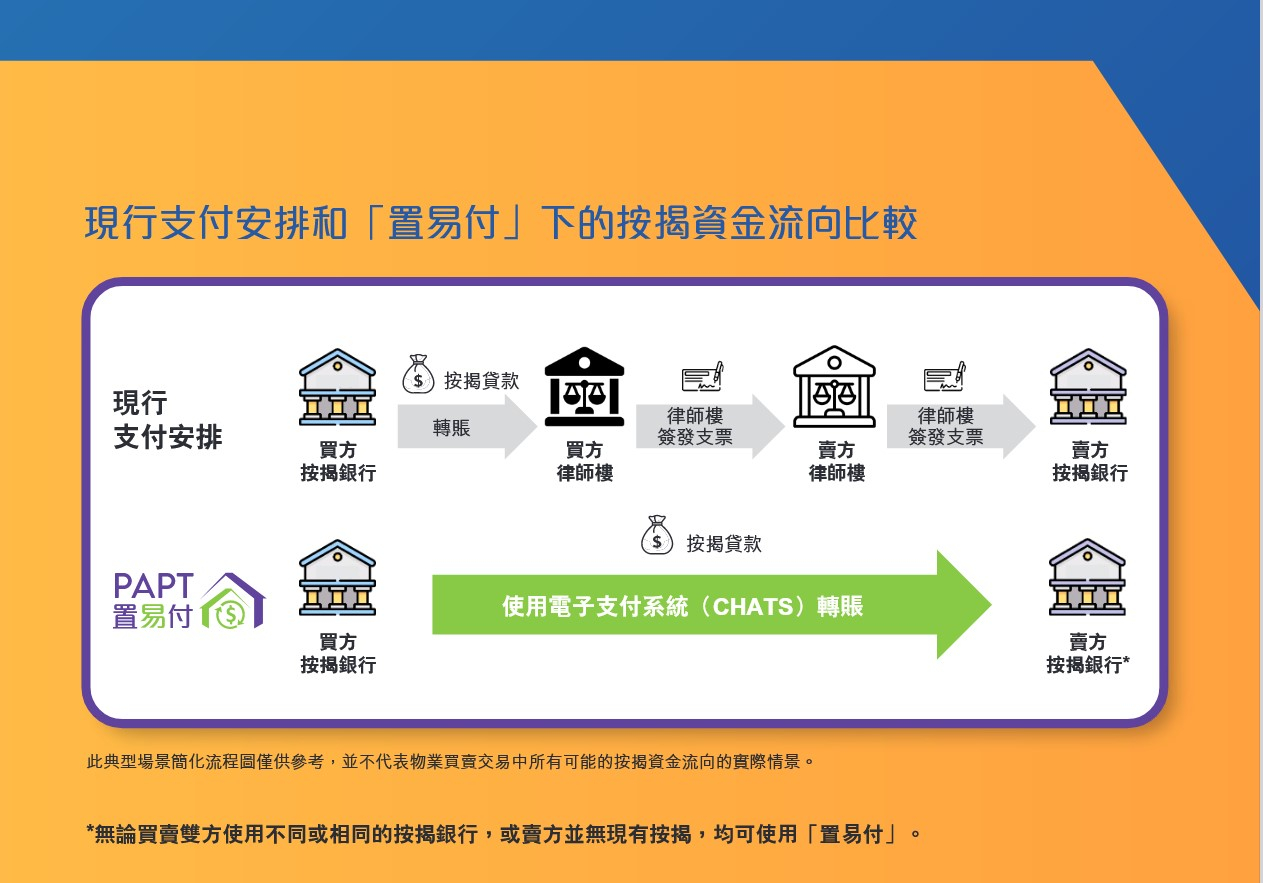金管局副總裁阮國恒表示,安排令市民進行二手物業交易時多一項更安全、更快捷的支付選項,按揭貸款款項可以透過電子支付系統,在銀行之間直接轉帳,賣方最快可以在成交當日收到款項,而傳統支付方式一般需要交易完成後兩個工作天支票收妥後,賣方才可以收到樓價餘款。阮國恒認為,新安排亦可以減低銀行界進行按揭業務時面對的信用和操作風險。