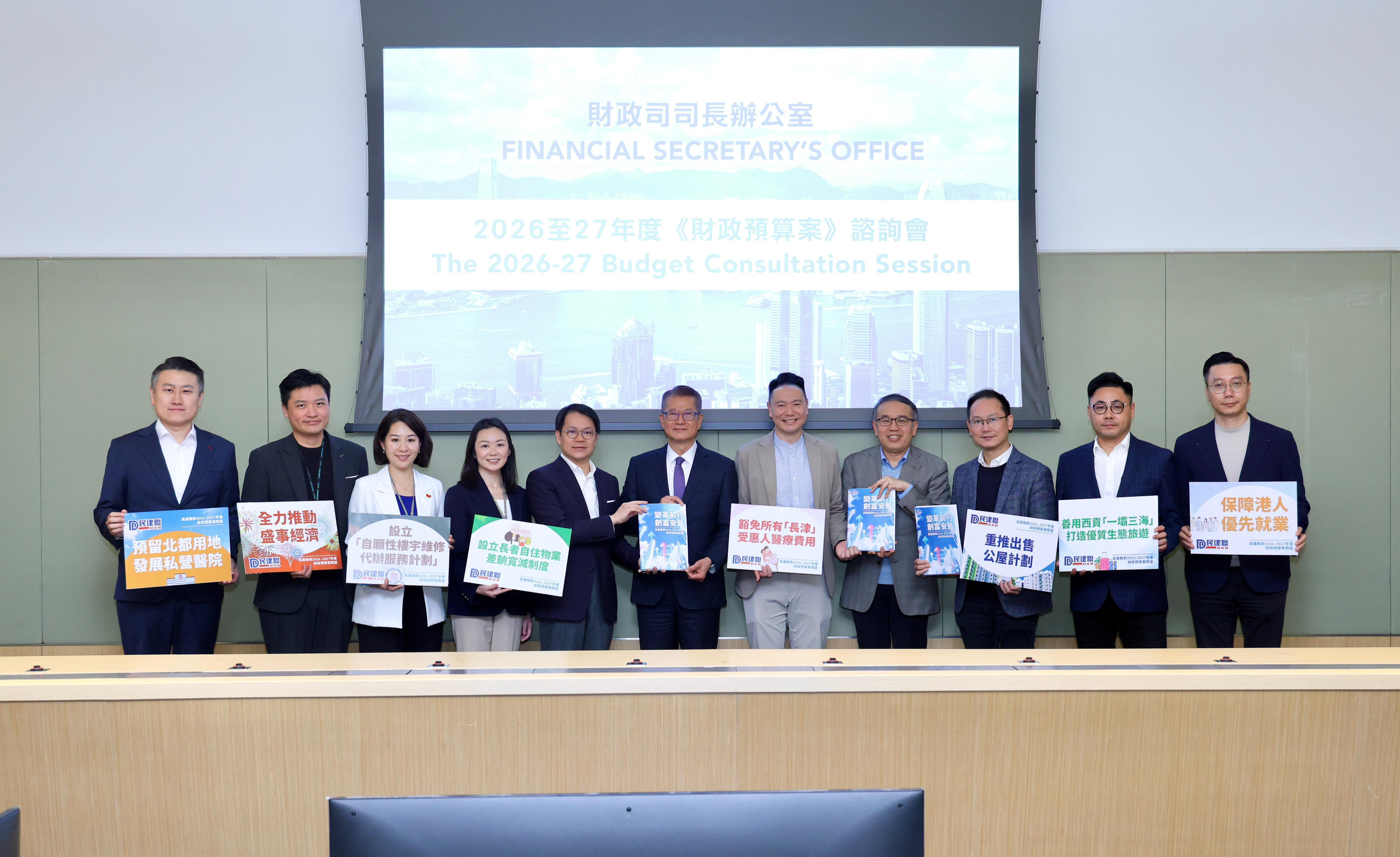 民建聯與財政司司長陳茂波會面,就新一份財政預算案提交173項建議。民建聯說,當前本港經濟穩步改善,同時仍存在不少挑戰和不確定性,期望特區政府以安定民心為務,民生與經濟並舉;同時積極對接「十五五」規劃,以科技和創新帶動,鞏固提升香港的金融、貿易和航運中心地位,同時培育新興產業,吸納國際高端人才,加快北部都會區建設,激發新經濟動能。
