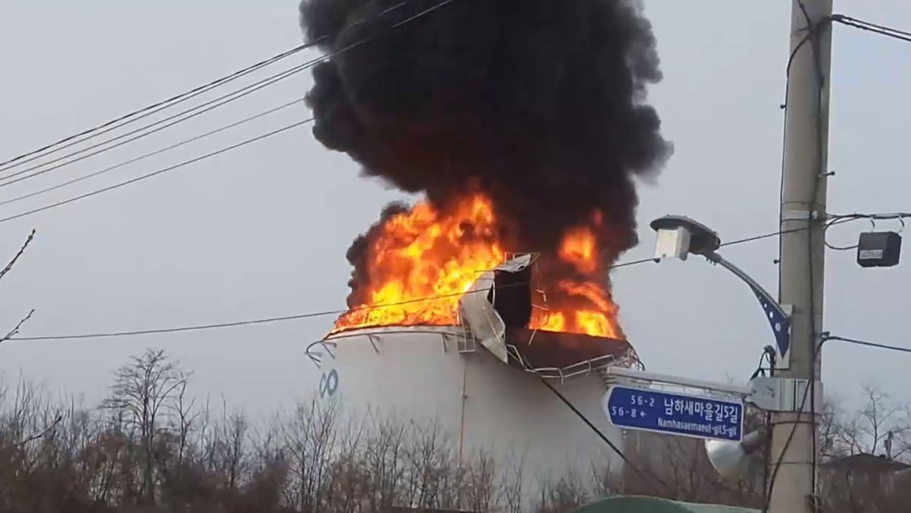 • 位於慶尚北道慶山市的大韓輸油管的戶外儲油罐,在當地早上接近八時起火。(韓聯社網上片段截圖)