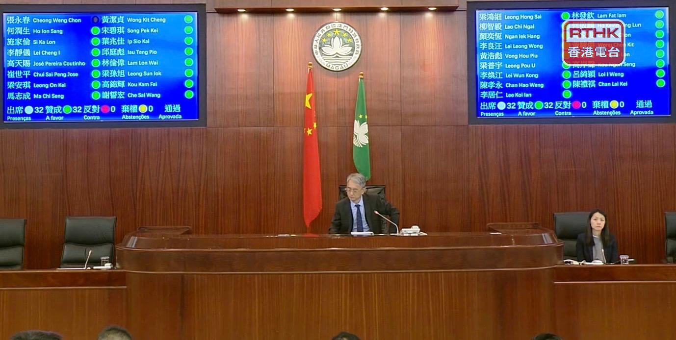 澳門立法會以全票32票一般性通過《澳門特區維護國家安全委員會》法案。