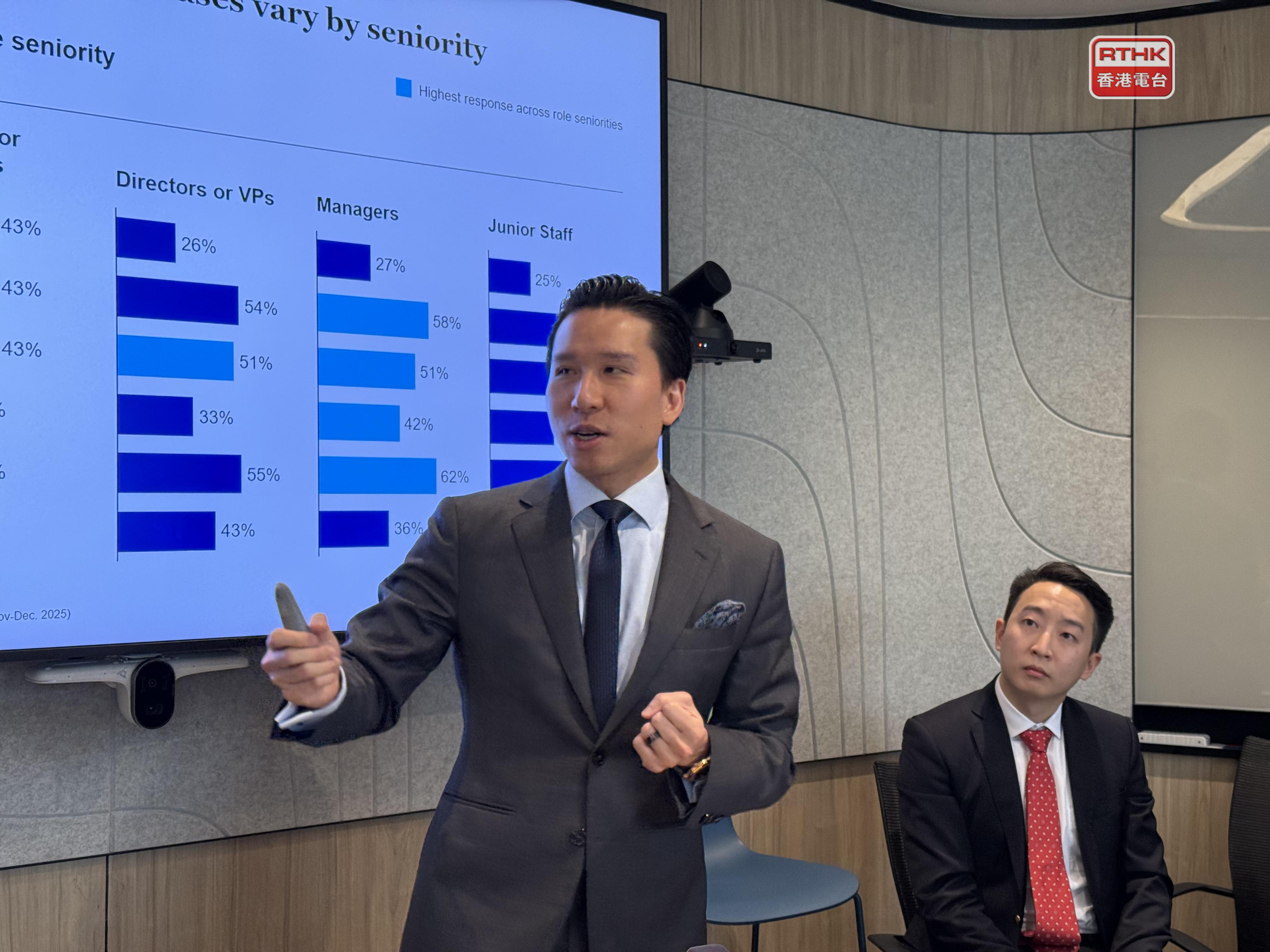 調查訪問了4521名香港在職人士與大專學生,結果顯示現時約七成職場人士會恒常使用AI工具,但少於25%會在整個工作流程上部署AI。僅14%企業高層經常使用Al。40%受訪者憂慮數據安全和私隱問題,其次認為AI缺乏明確應用場景和應用渠道有限。