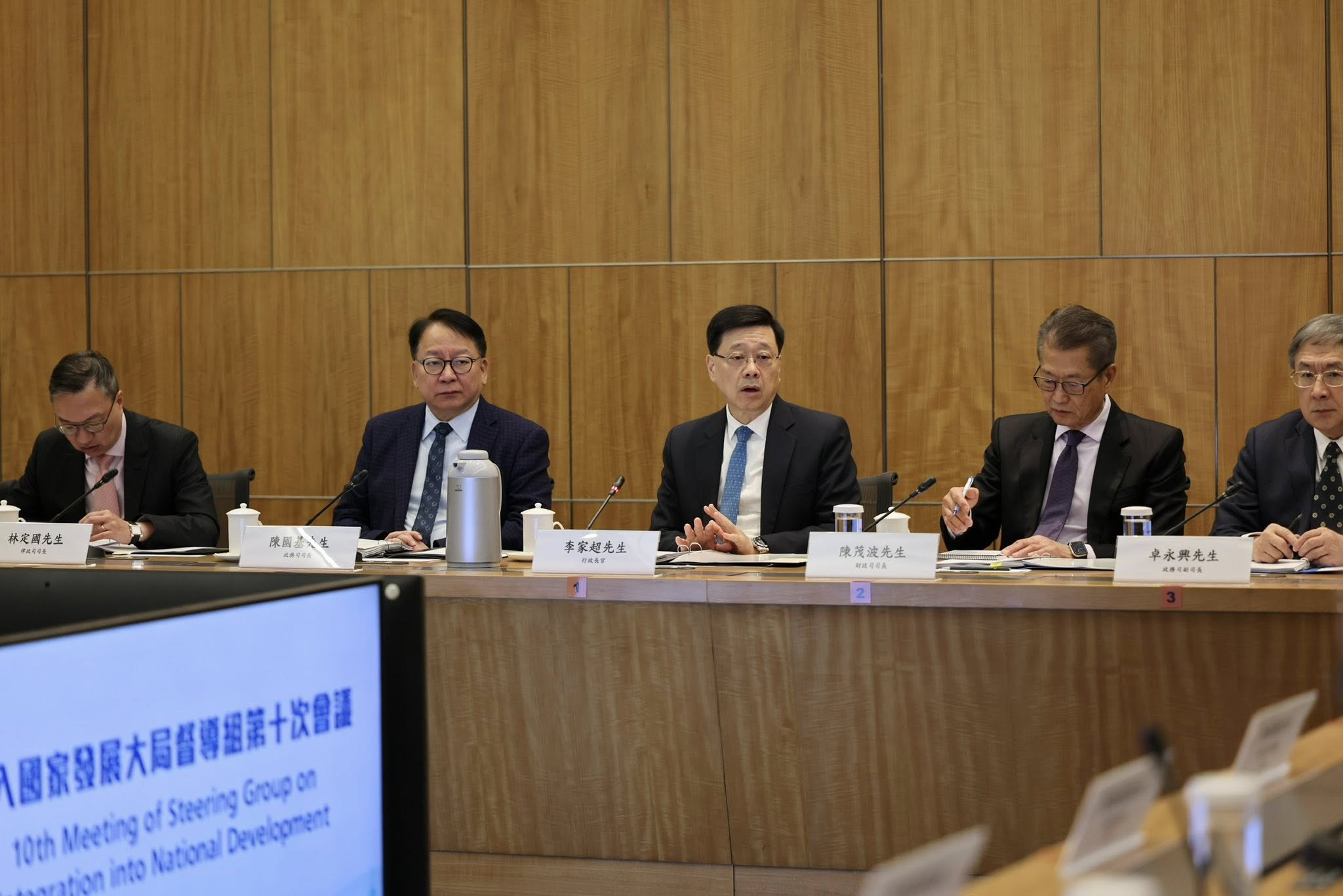 行政長官李家超上午主持融入國家發展大局督導組會議,領導全體司局長開展對接國家「十五五」規劃的準備工作。他指示各政策局成立預備小組並開展準備工作,在「十五五」規劃的內容和細節正式公布時,預備小組便轉為對接「十五五」規劃編制小組,全速工作,目標是在今年內完成對接「十五五」規劃的「香港五年規劃」。