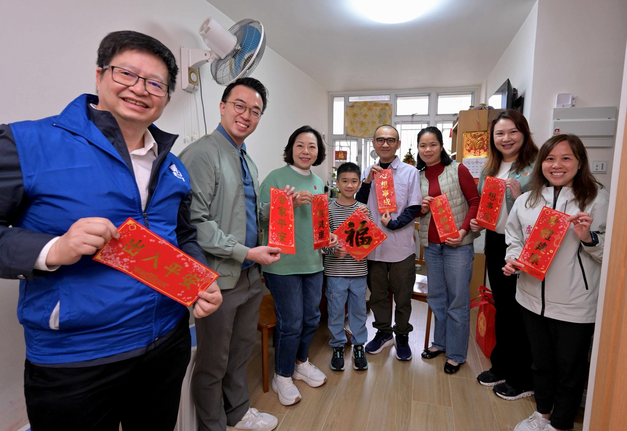 民政及青年事務局局長麥美娟在葵青民政事務專員梁乘龍陪同下,聯同葵青區區議員和關愛隊代表探訪居於長安邨的中產家庭和雙老家庭。