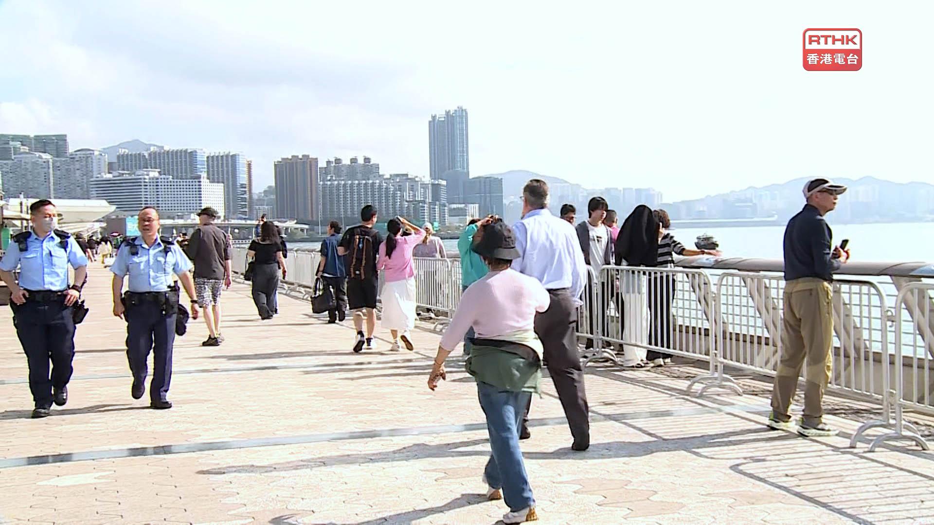 署方表示,當日會聯同相關部門的執法隊伍加強巡邏轄下多個場地,特別是人流眾多的地方,包括九龍海旁一帶的香港文化中心露天廣場、梳士巴利花園、星光大道、尖沙咀海濱花園、市政局百週年紀念花園、啟德郵輪碼頭公園、啟德空中花園、啟德海濱花園、觀塘海濱花園及茶果嶺海濱公園,以及港島海旁的添馬公園、中西區海濱長廊(中環段)、灣仔臨時海濱花園及東岸公園(第一期)。