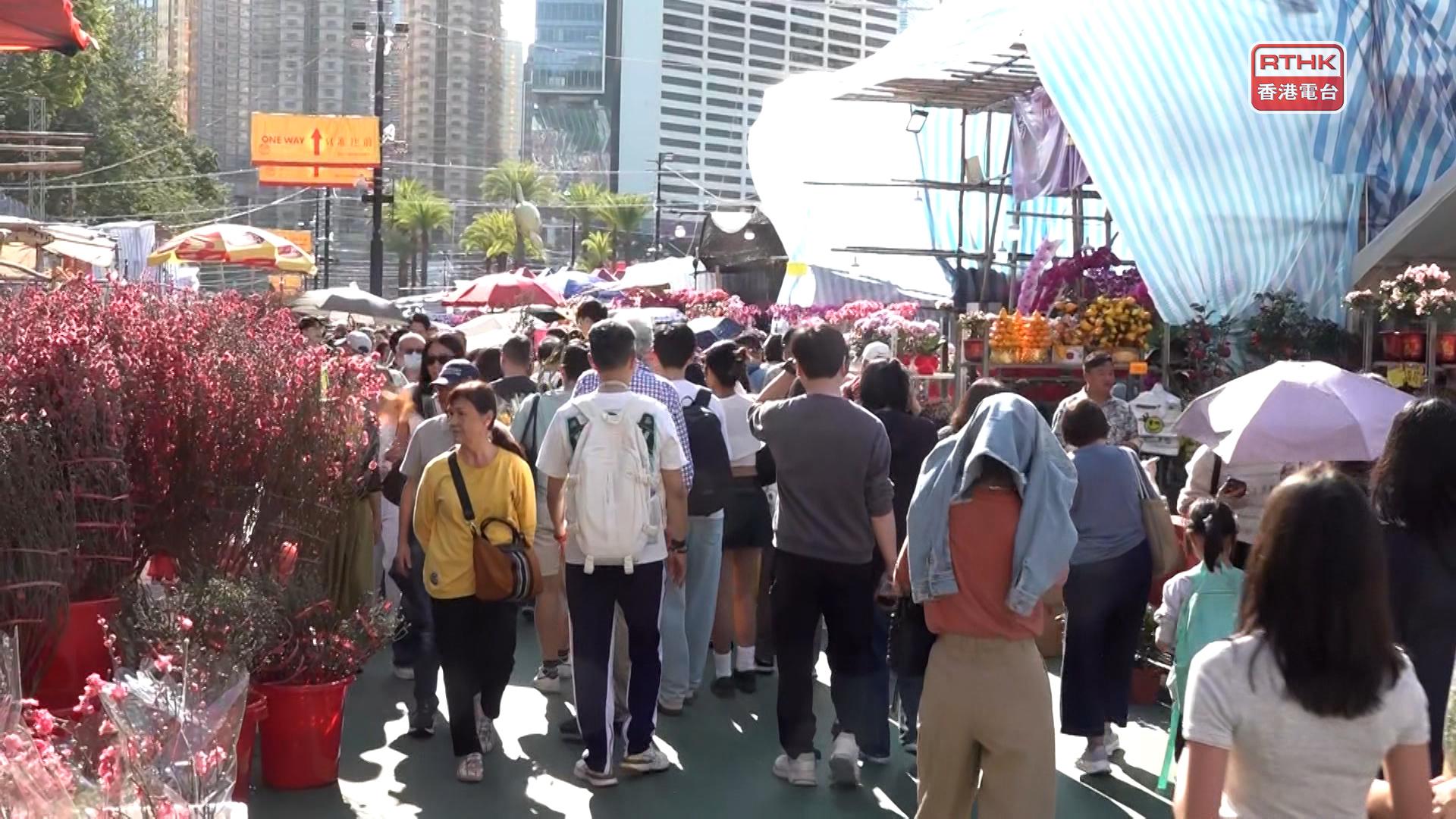 全港14個年宵市場將開放至年初一清晨,在維園年宵市場,越來越熱鬧,有花檔滿意銷情,亦有中學生認為擺檔有得著。