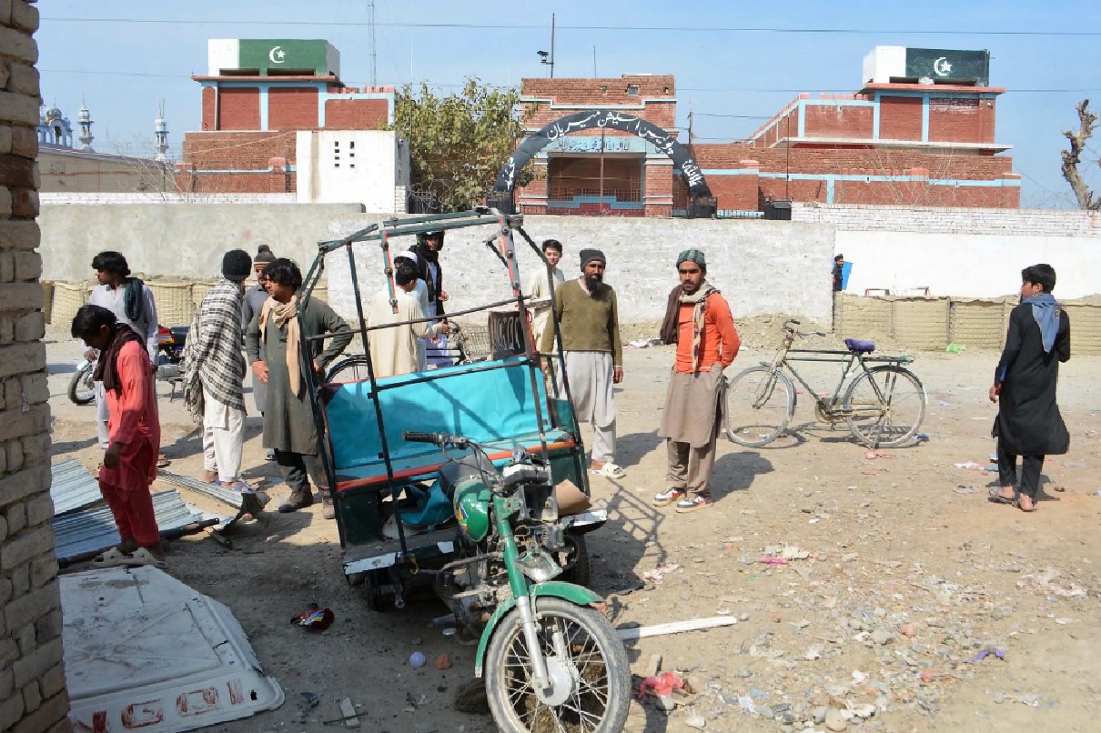 開伯爾普什圖省發生炸彈襲擊事故,事後民眾聚集在現場圍觀。(法新社)