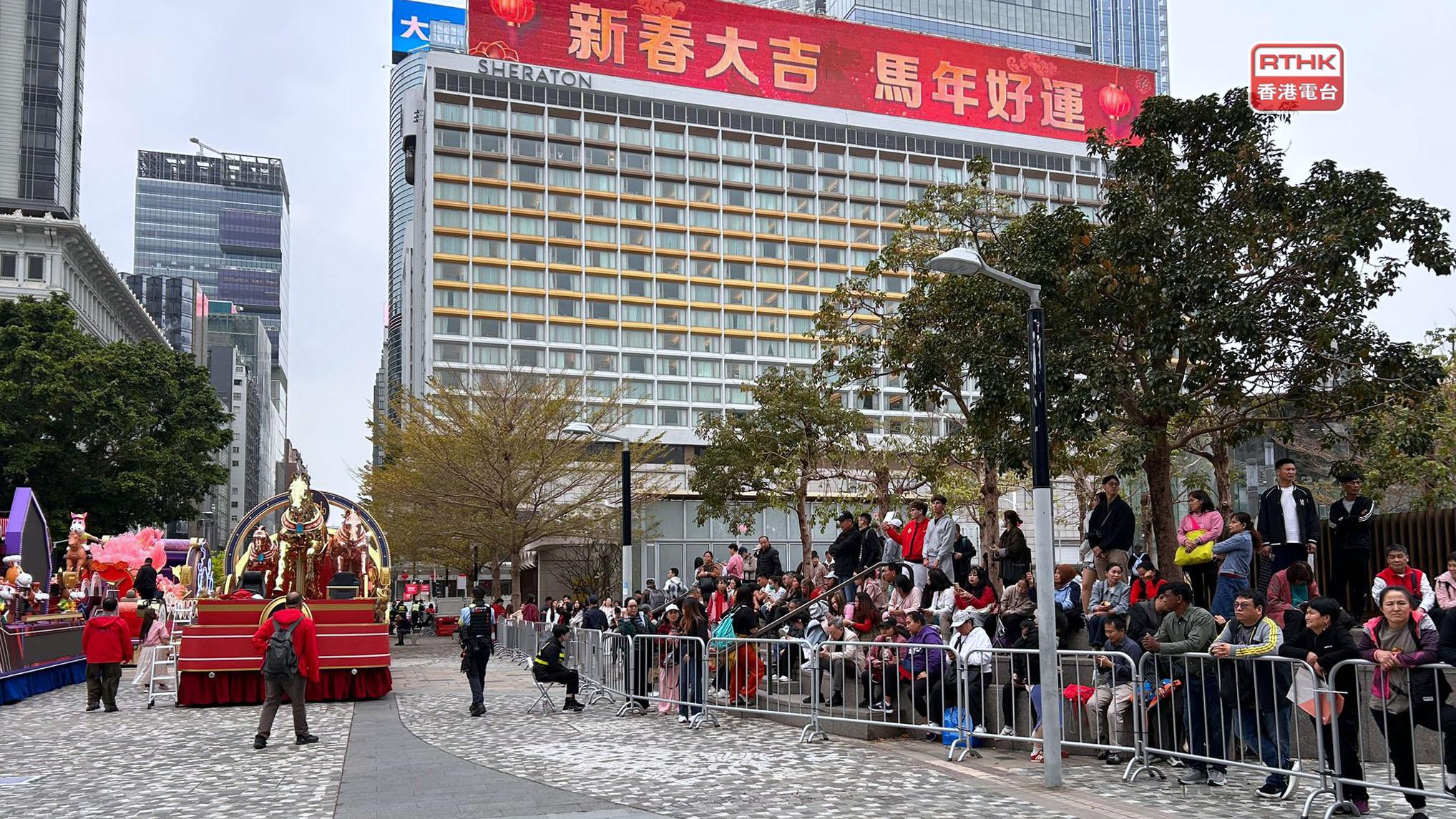 在文化中心廣場的門票一早已售罄,但市民和遊客可沿途免費觀賞。在太空館附近,下午已經有市民到場,等候觀賞花車巡遊,亦內地遊客說,期待看到亮燈後的花車,認為在香港過年氣氛亦很好。