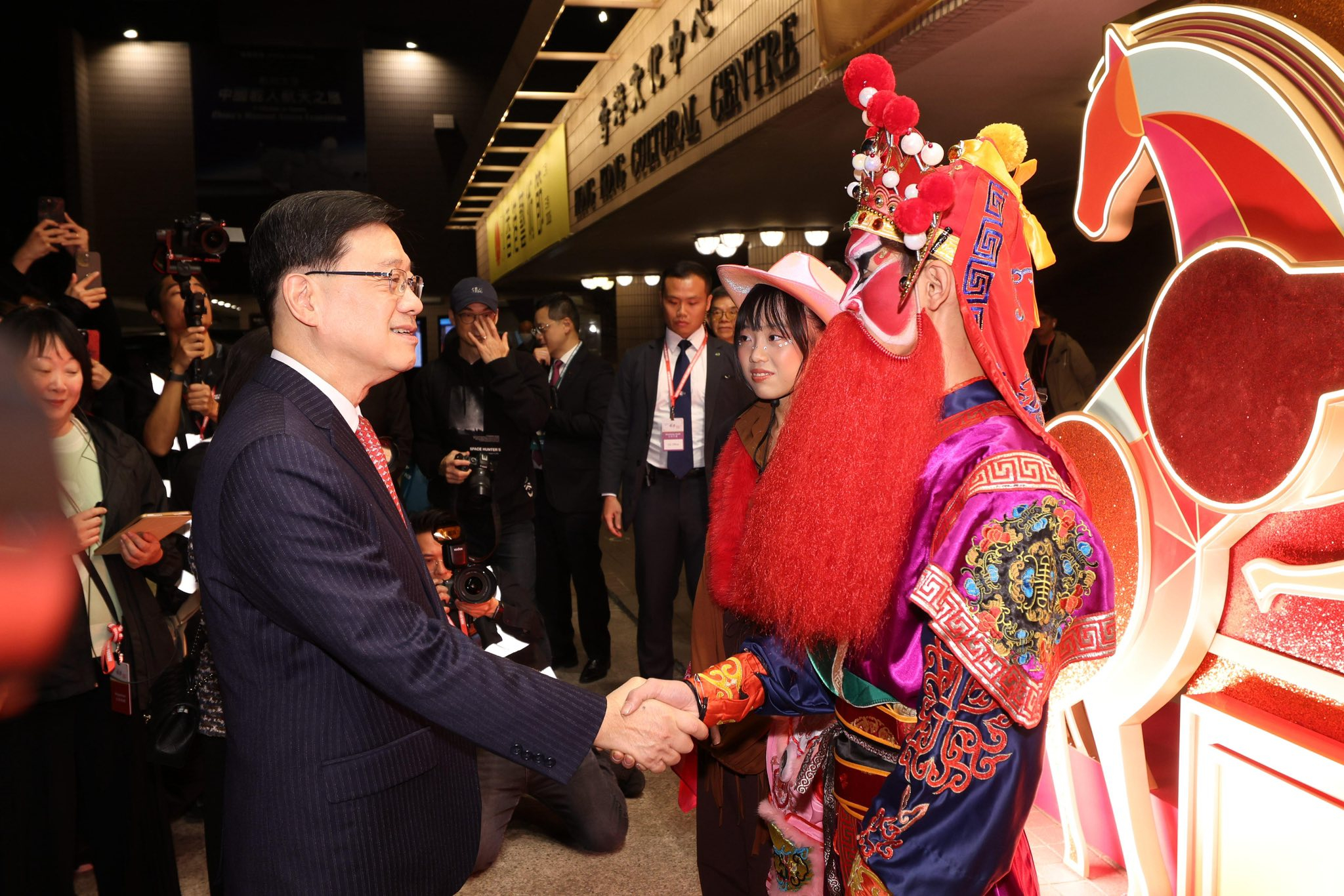 「新春國際匯演之夜」晚上在尖沙咀舉行,行政長官李家超出席啟動儀式並致辭,他欣賞表演前與部分表演團隊代表見面,感謝他們為香港帶來這場視聽盛宴。