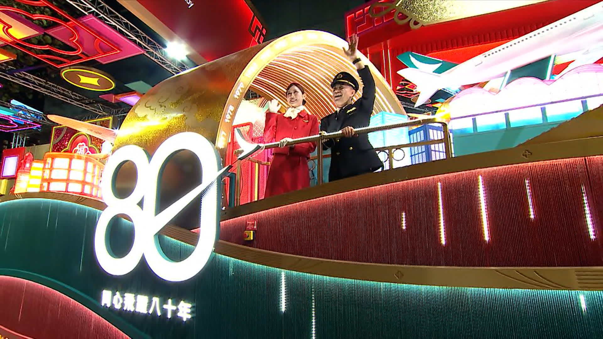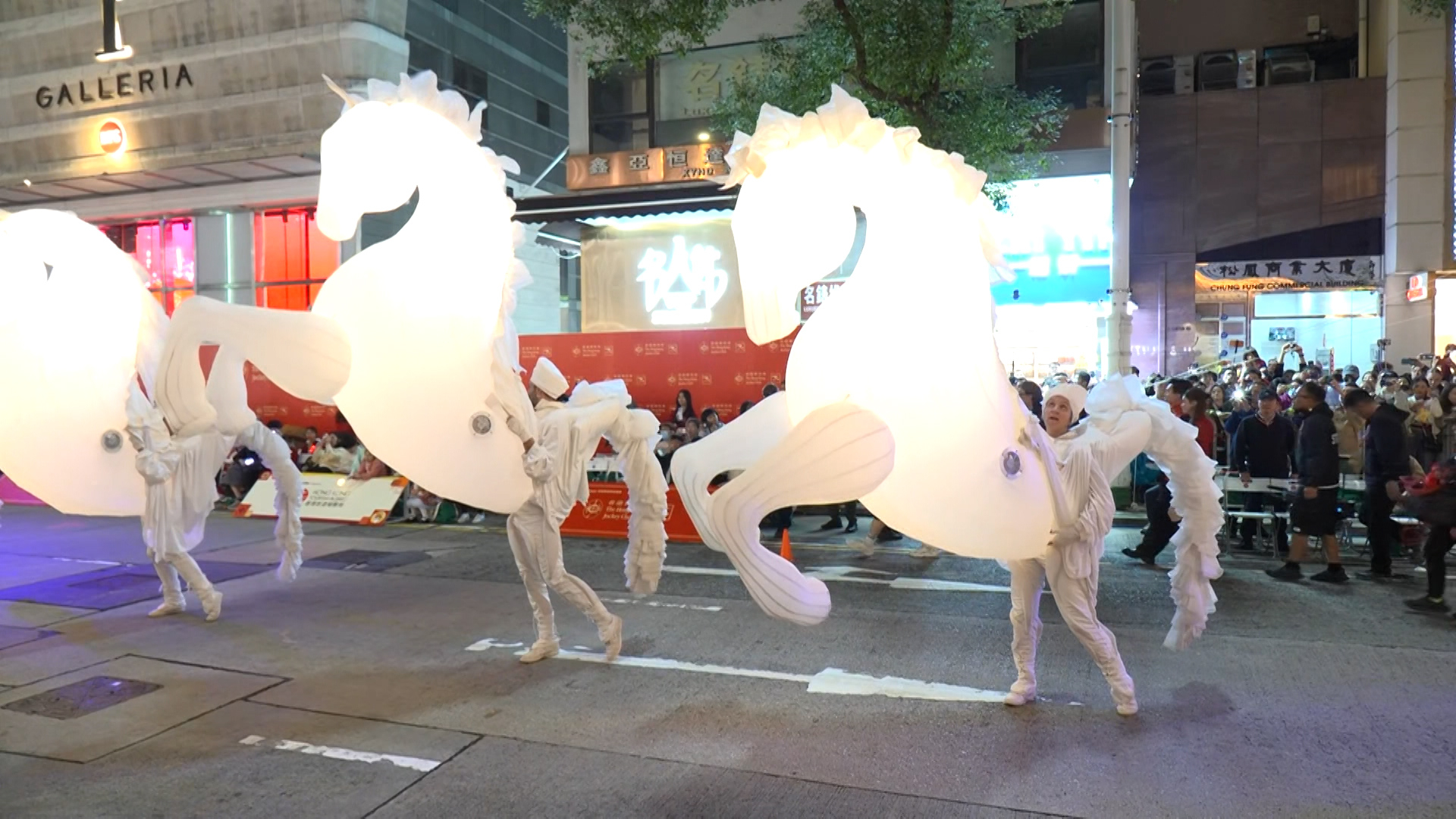 「新春國際匯演之夜」花車巡遊晚上約10時結束,吸引大批市民和旅客到尖沙咀觀賞。今年有12架花車及46隊表演隊伍參與,以「開年、開運、開心」為主題。冠名贊助商國泰航空的花車打頭陣,展示兩款經典客機。賽馬會花車由三匹駿馬牽頭。
