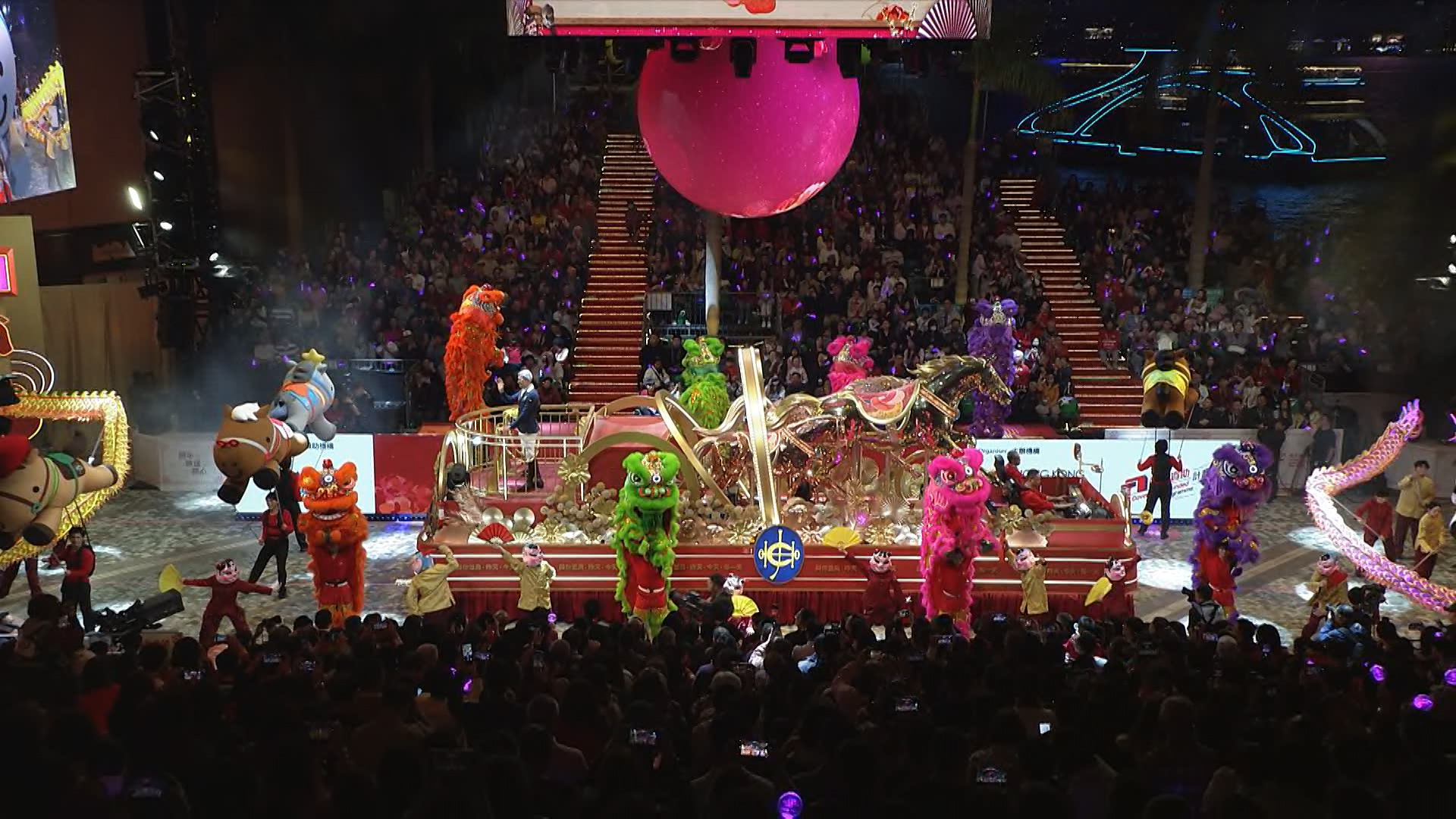 巡遊隊伍由文化中心出發,沿廣東道、海防道及彌敦道前行,以喜來登酒店外為終點。廣東道兩旁迫滿觀眾。海洋公園6隻大熊貓的公仔以新年造型現身,向市民拜年。香港麥當勞花車參考80年代沙田新城市廣場分店經典小火車裝置為主題,吸引不少觀眾「打卡」。