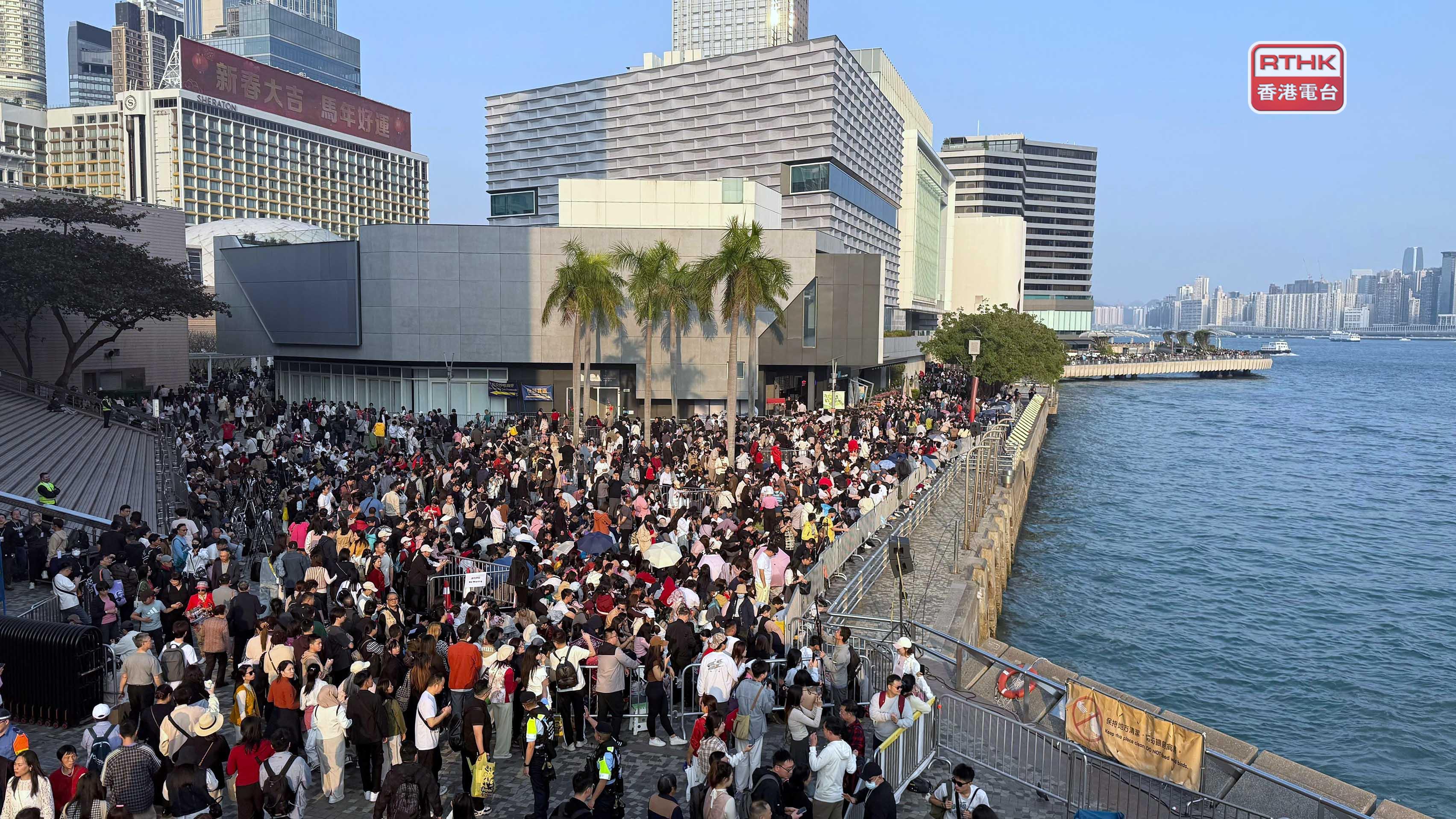 大批市民及遊客在尖沙咀等候觀賞煙花匯演