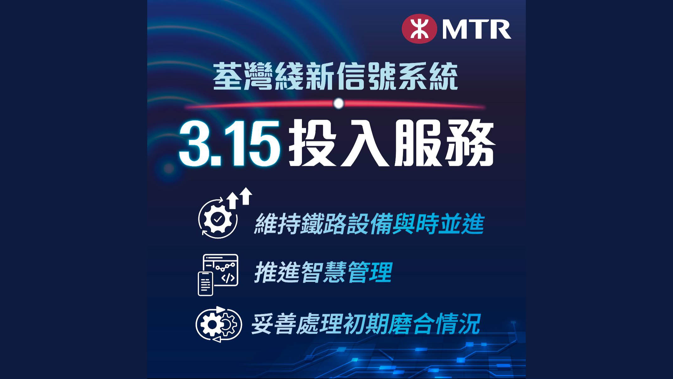 港鐵說,會密切監察新信號系統運作表現,並已制訂全面的應變管理方案;在新信號系統投入服務初期,現有信號系統將暫時保留,作為整體應變及風險管理措施的一部分。
