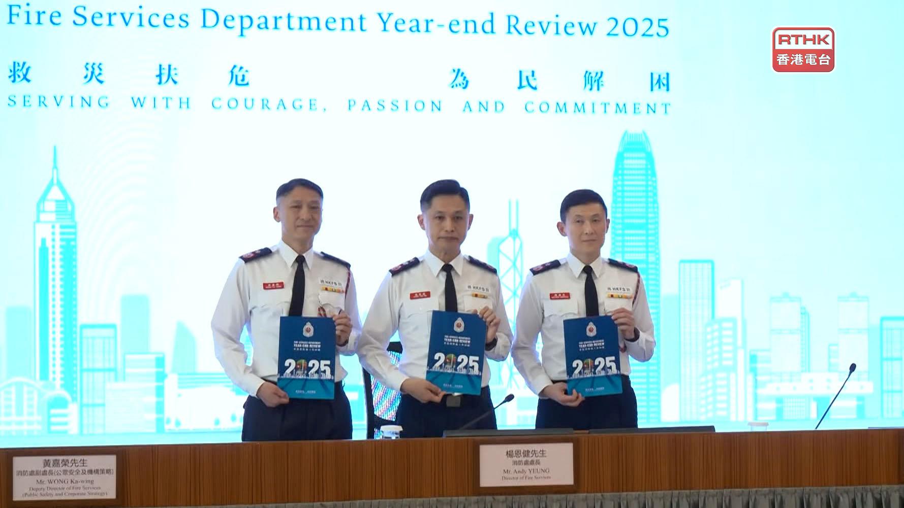 消防處表示,去年的火警召喚宗數按年下跌4.9%至近36000宗,成災樓宇火警增加25宗,至2000宗。至於召達時間內到場達96.1%,較服務承諾高3.6%。特別服務宗數按年升8%至近42500宗。