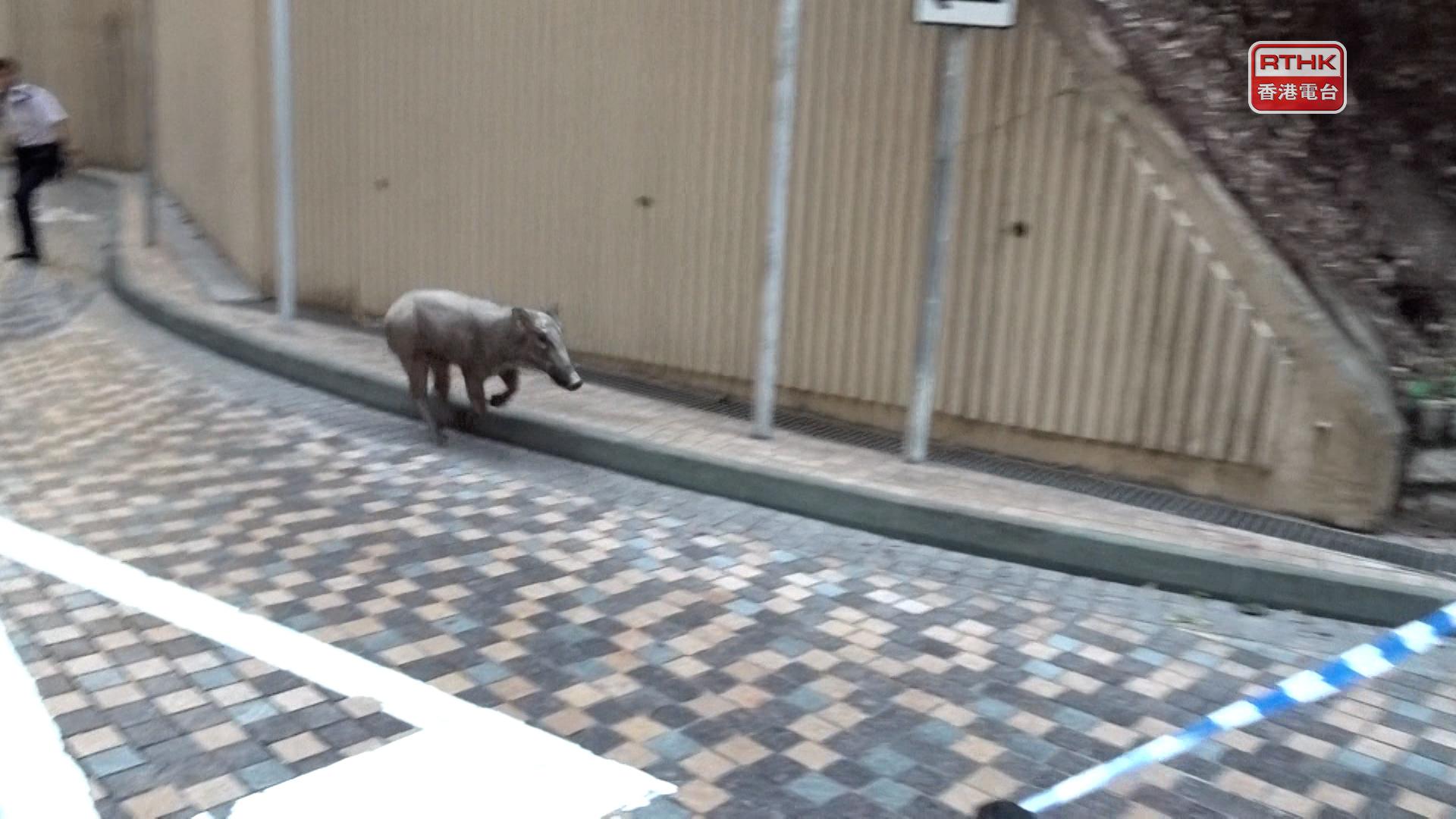 直至晚上8時許,漁護署獸醫以麻醉槍將有關野豬麻醉並捕捉。署方說,野豬是亞成年雄性,體長約1.2米,重約40公斤,經檢查發現其一對後腳及口腔有明顯外傷。