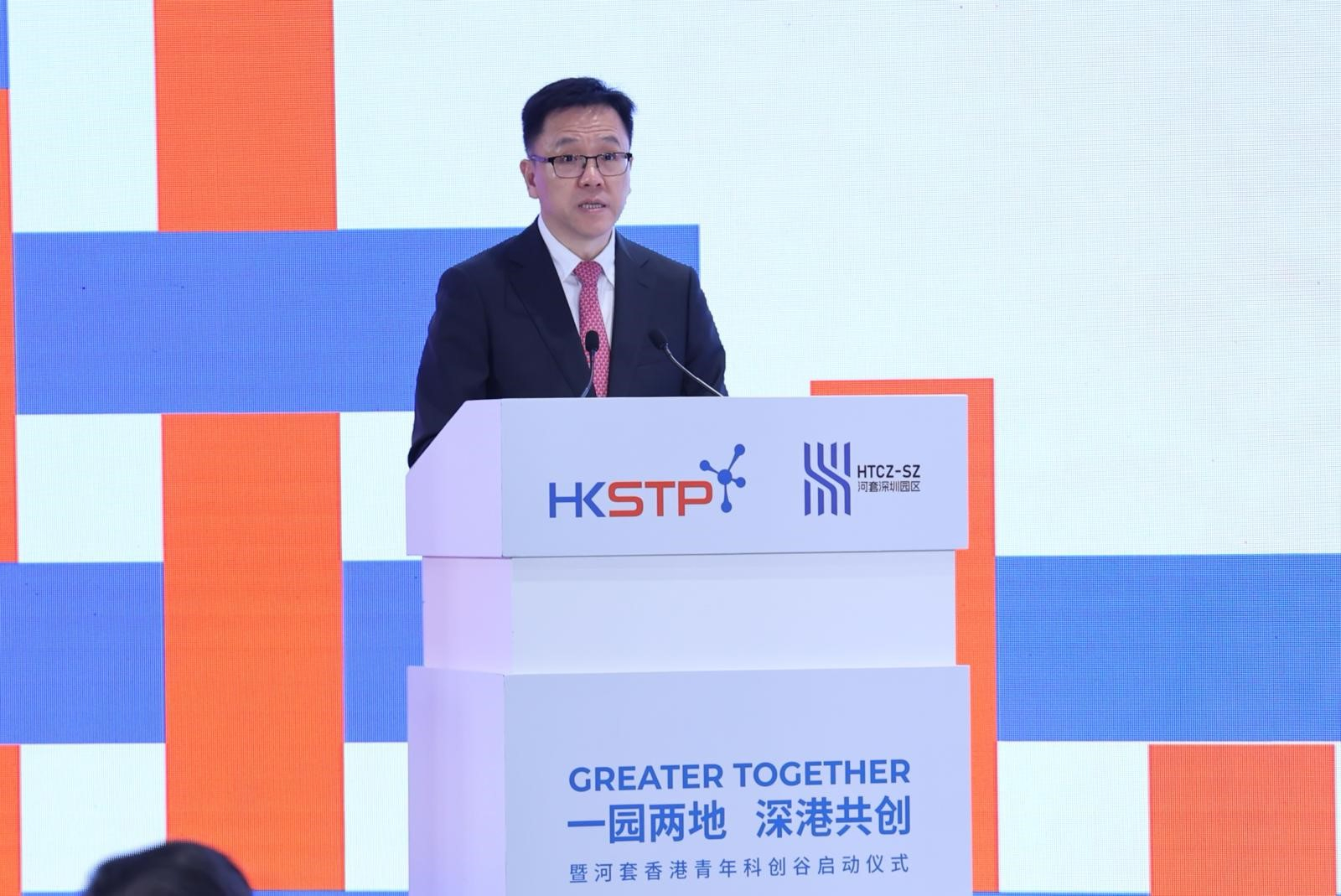 孫東在深圳出席「一園兩地、深港共創」暨河套香港青年科創谷啟動儀式致辭表示,河套香港園區去年12月正式開園,首批來自生命健康科技、人工智能及數據科學、新能源等支柱產業等60多個租戶已陸續進駐園區。