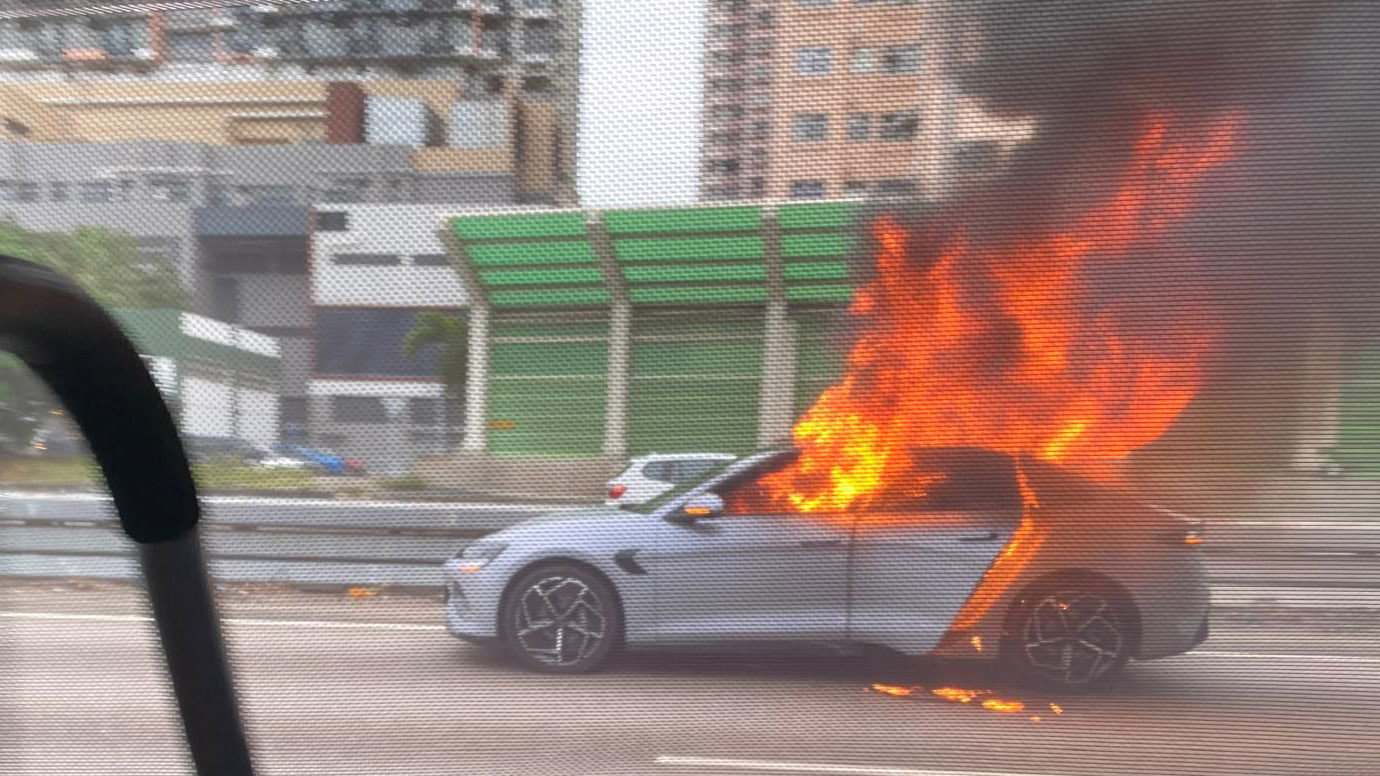 屯門公路近青田交匯處有車著火 現場交通擠塞