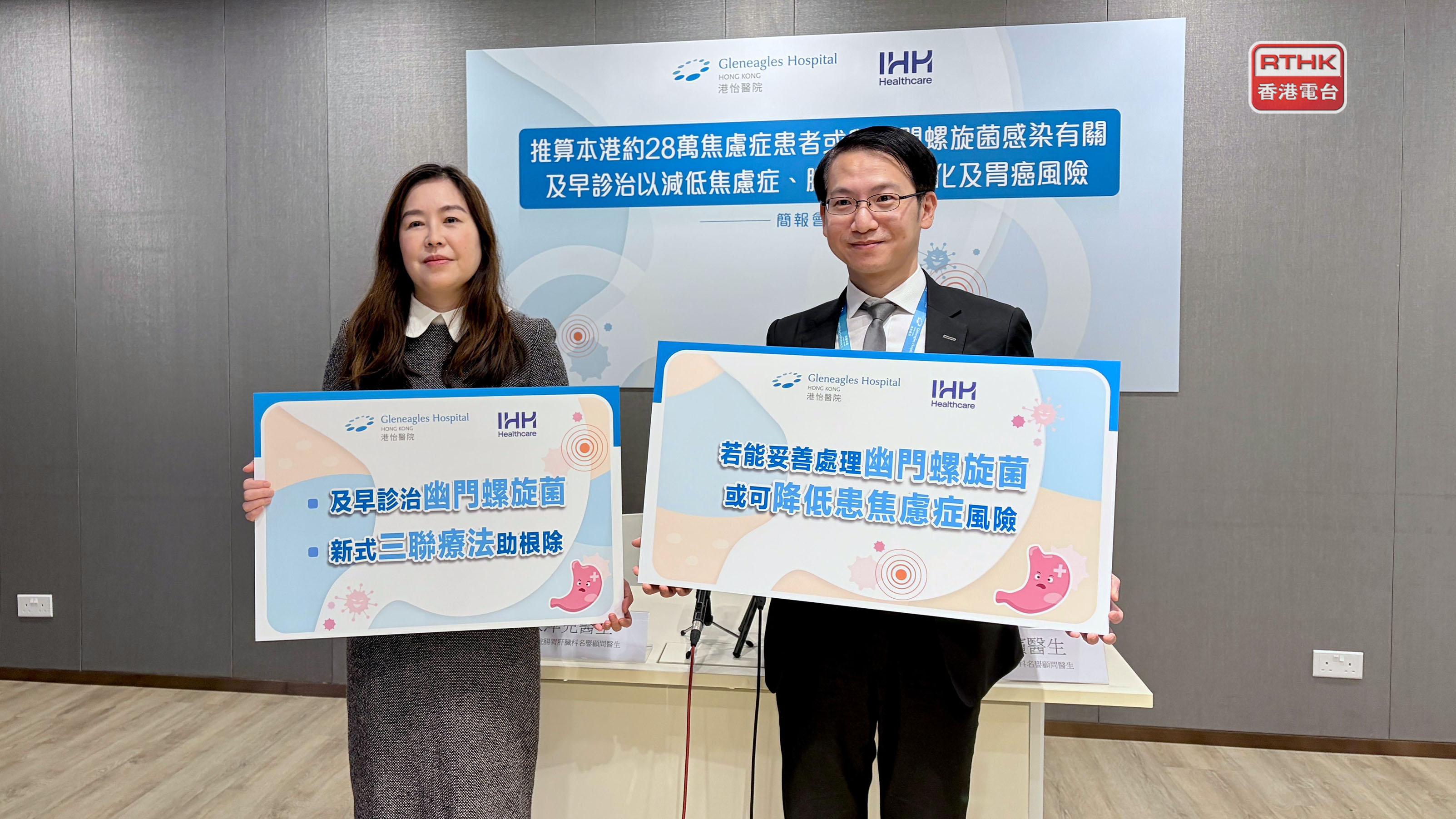 港怡精神科名譽顧問醫生王駿濱指出,研究顯示,幽門螺旋菌或影響腸道菌群,從而影響大腦及情緒相關化學物質;而焦慮等心理因素亦會削弱胃黏膜及免疫力,令人更易感染幽門螺旋菌。他建議市民應注意兩者關係,以提高認知,透過主動檢查、及早診治,減低焦慮症、腸胃問題惡化以至患胃癌的風險。