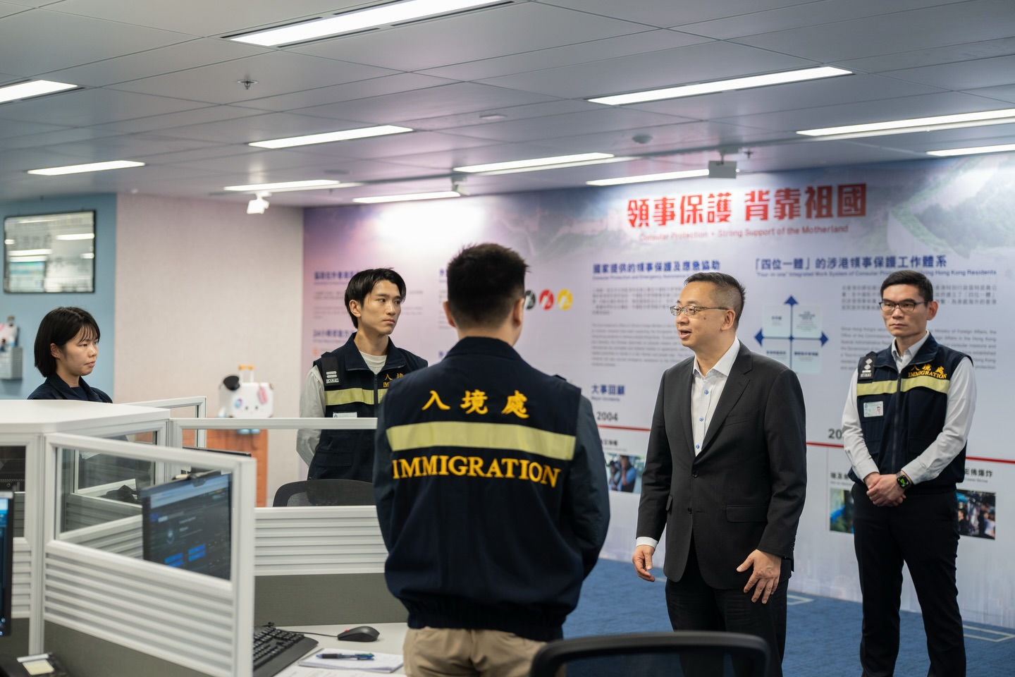 入境處處長郭俊峯到1868熱線中心視察及聽取匯報,並勉勵同事繼續努力,協助滯留港人盡快安全離開當地。入境處說,隨著部分中東國家的機場逐步恢復有限度運作,會繼續與受影響的港人保持聯絡,就航班與行程上提供意見,積極協助他們平安順利地回港。