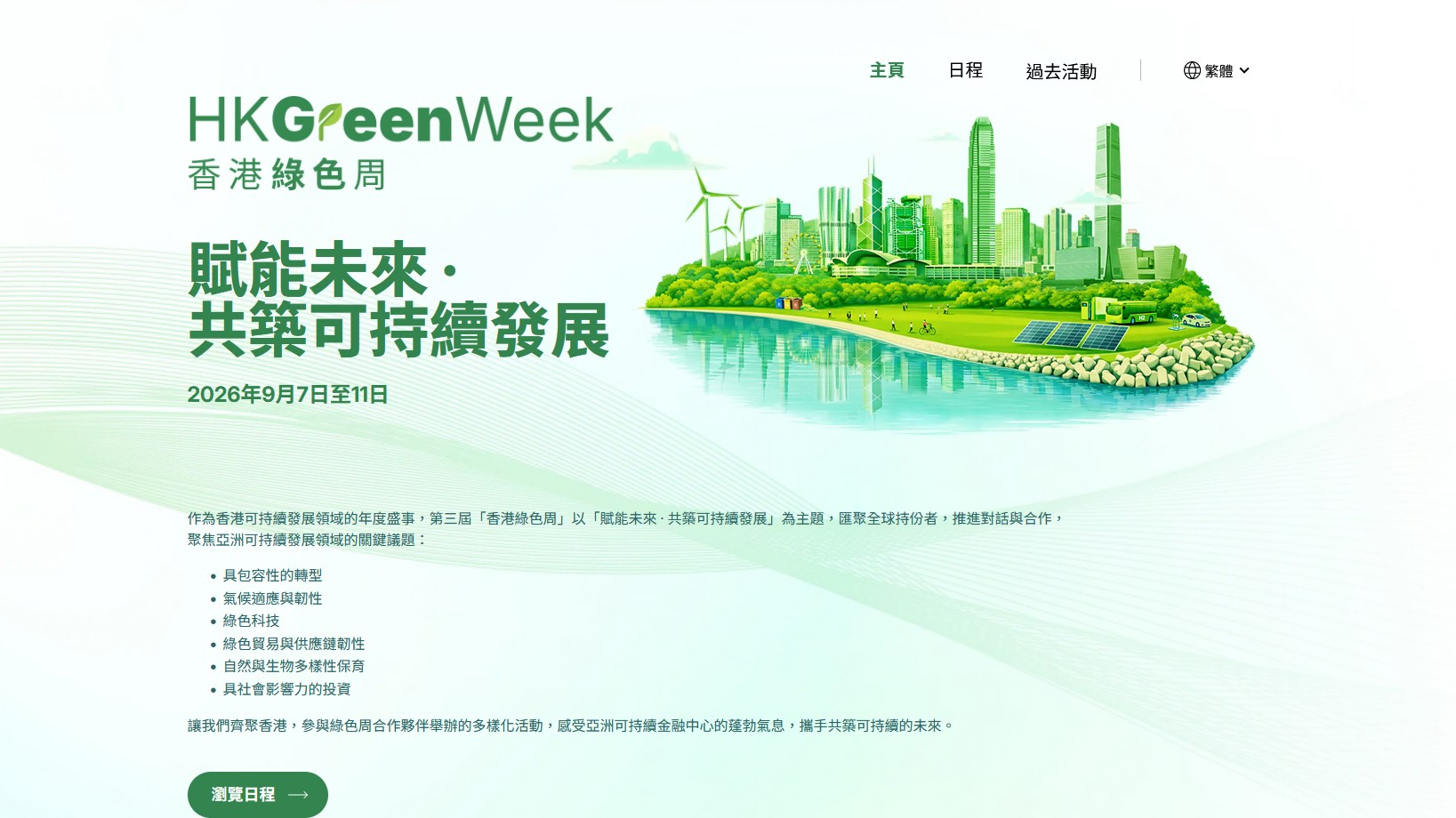 金管局表示,「香港綠色周2026」9月7日至11日舉行,主題為「賦能未來.共築可持續發展」。