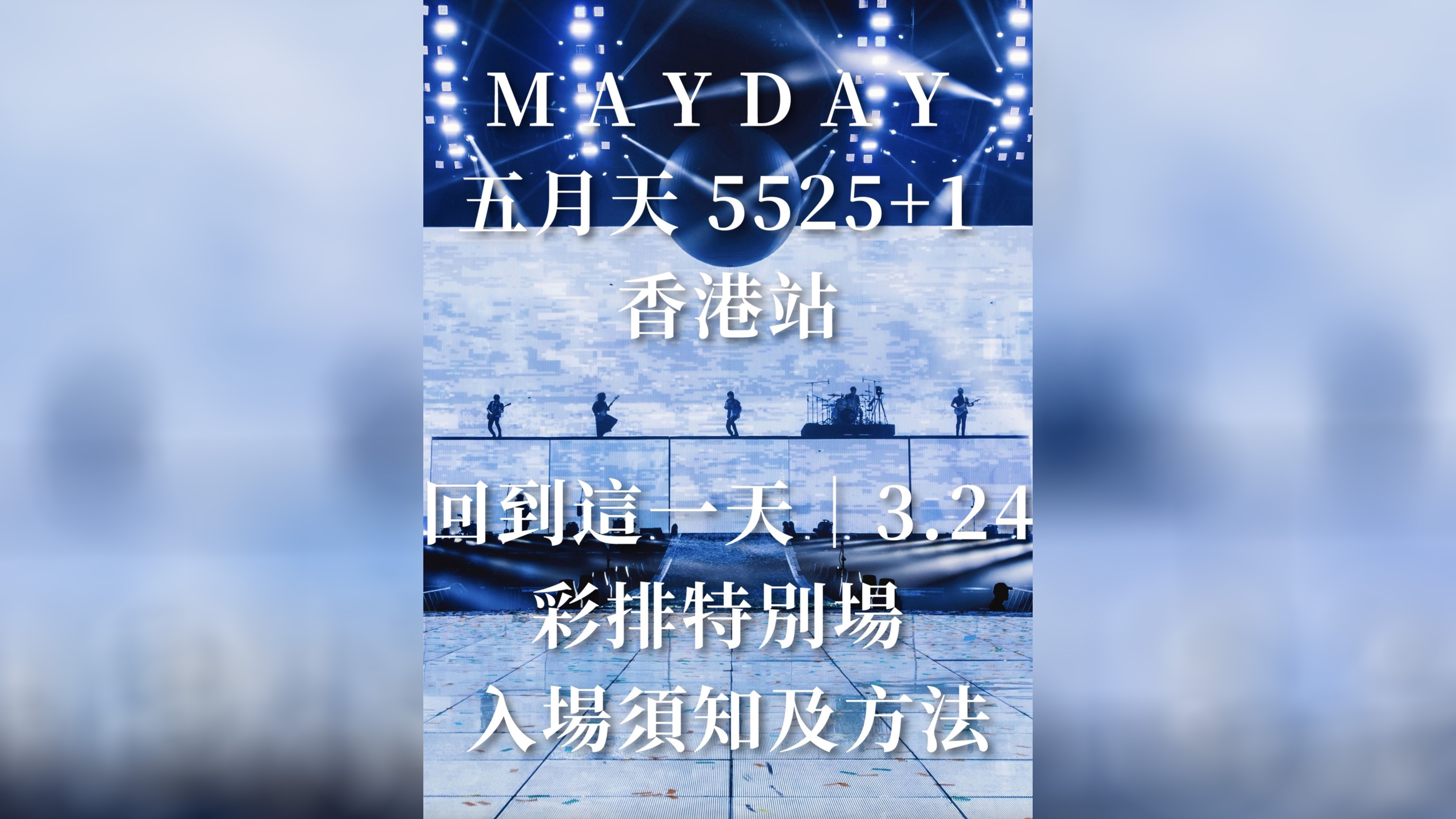 主辦單位特高娛樂晚上在社交專頁表示,持本月24日的五月天演唱會實體門票觀眾,屆時可以在24日下午5時半起進場參與彩排特別場,活動晚上7時開始,約40分鐘。採用一人一票,按門票所列座位入座。以快達票購票的觀眾,可以在16日中午起取票。