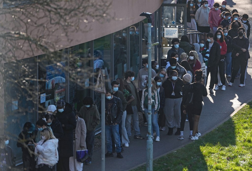 數百名學生在肯特大學排隊接種疫苗。(法新社)