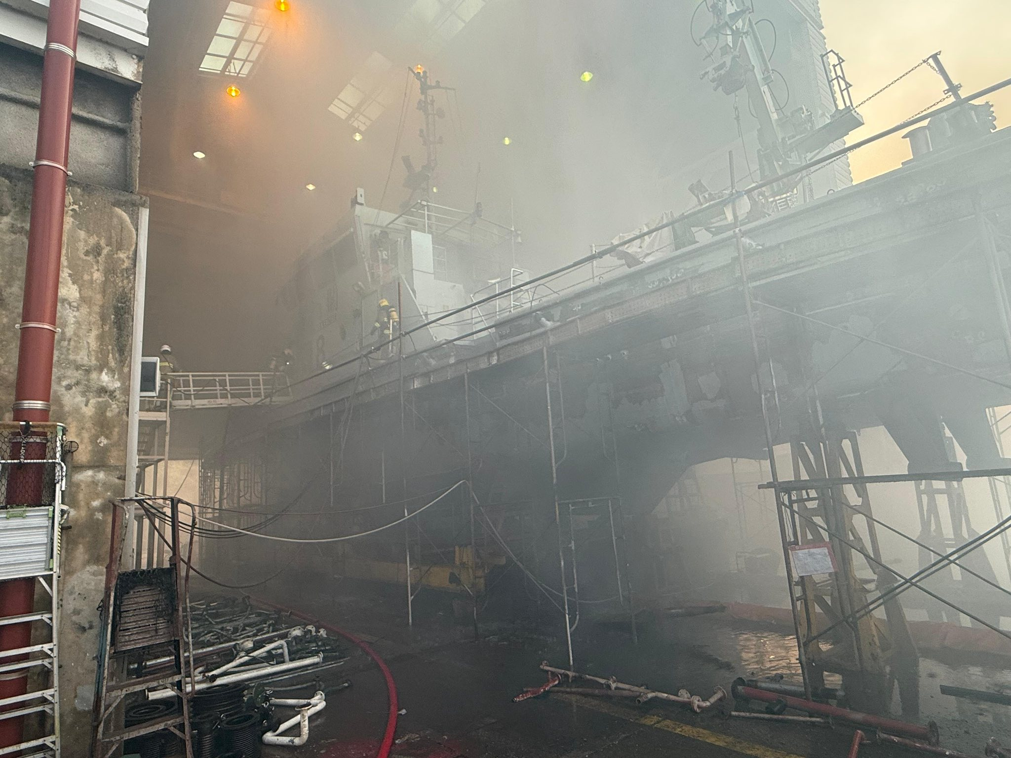 昂船洲政府船塢有船隻起火 據了解事發時有工人正維修