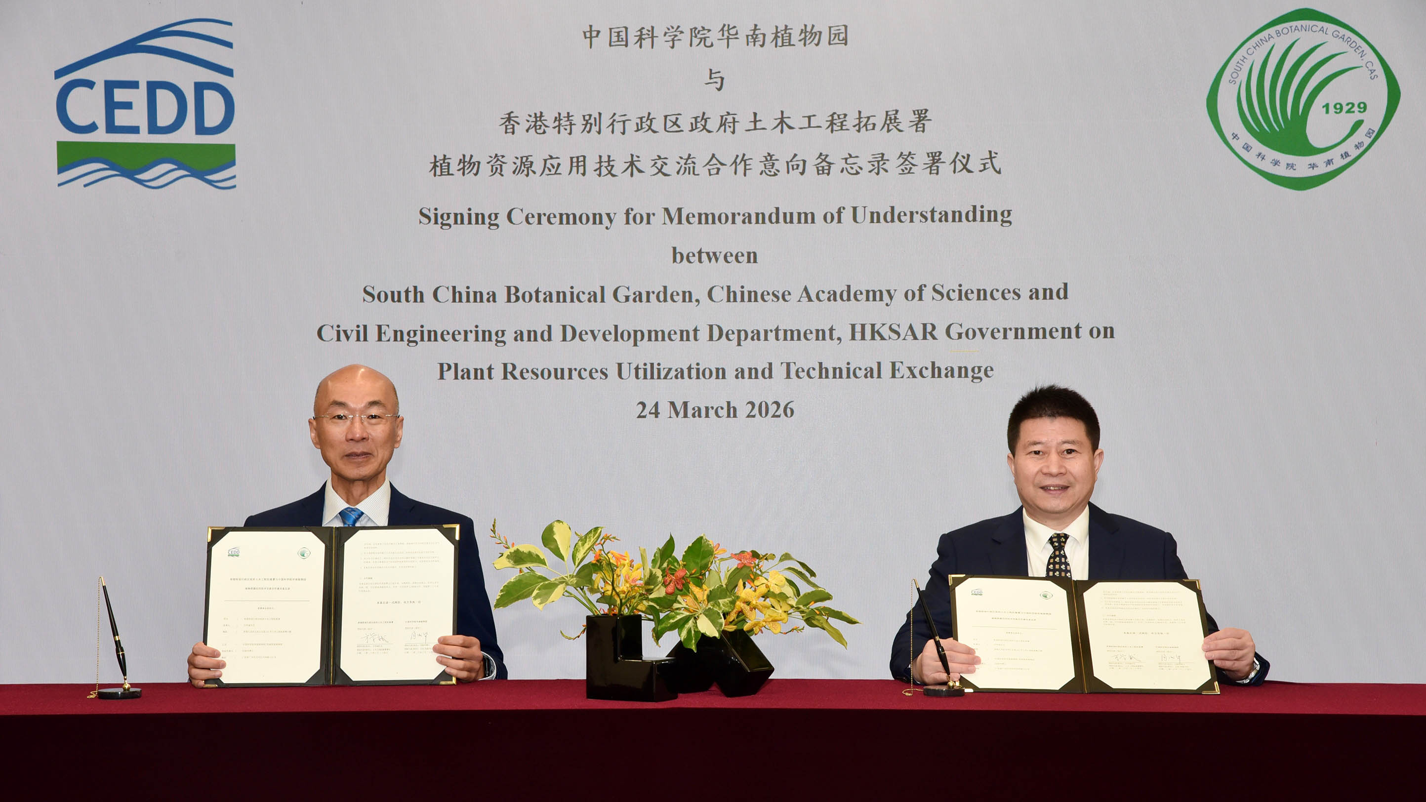 備忘錄由土木工程拓展署署長方學誠與華南植物園主任閆俊華簽署。雙方將共同探討植物資源應用的關鍵技術、交流技術和共享資源。