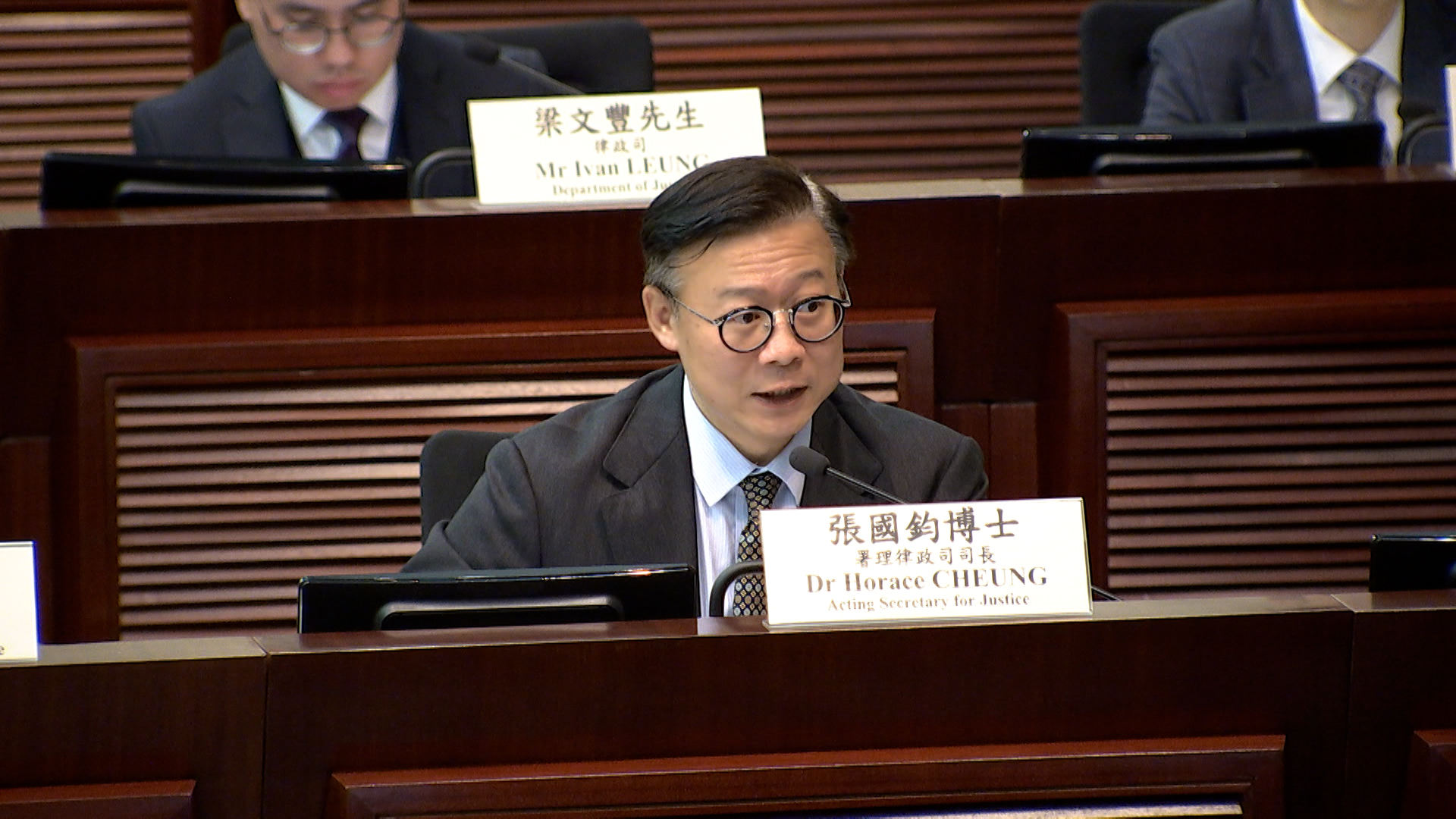 署理律政司司長張國鈞發言時表示,根據《香港國安法》第14條,國安委工作不受特區任何機構、組織或個人干涉,工作信息不予公開,決定亦不受司法覆核,上述規定適用於今次修訂細則。他認為,修訂細則既能有效防範、制止及懲治危害國家安全行為和活動,亦完全符合《基本法》和《香港國安法》有關保障人權的規定。修訂細則充分體現普通法重視人權和程序保障的核心精神和原則。