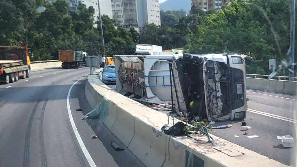 龍富路龍門居對開有一輛貨車在彎位失事翻側。(網上圖片)