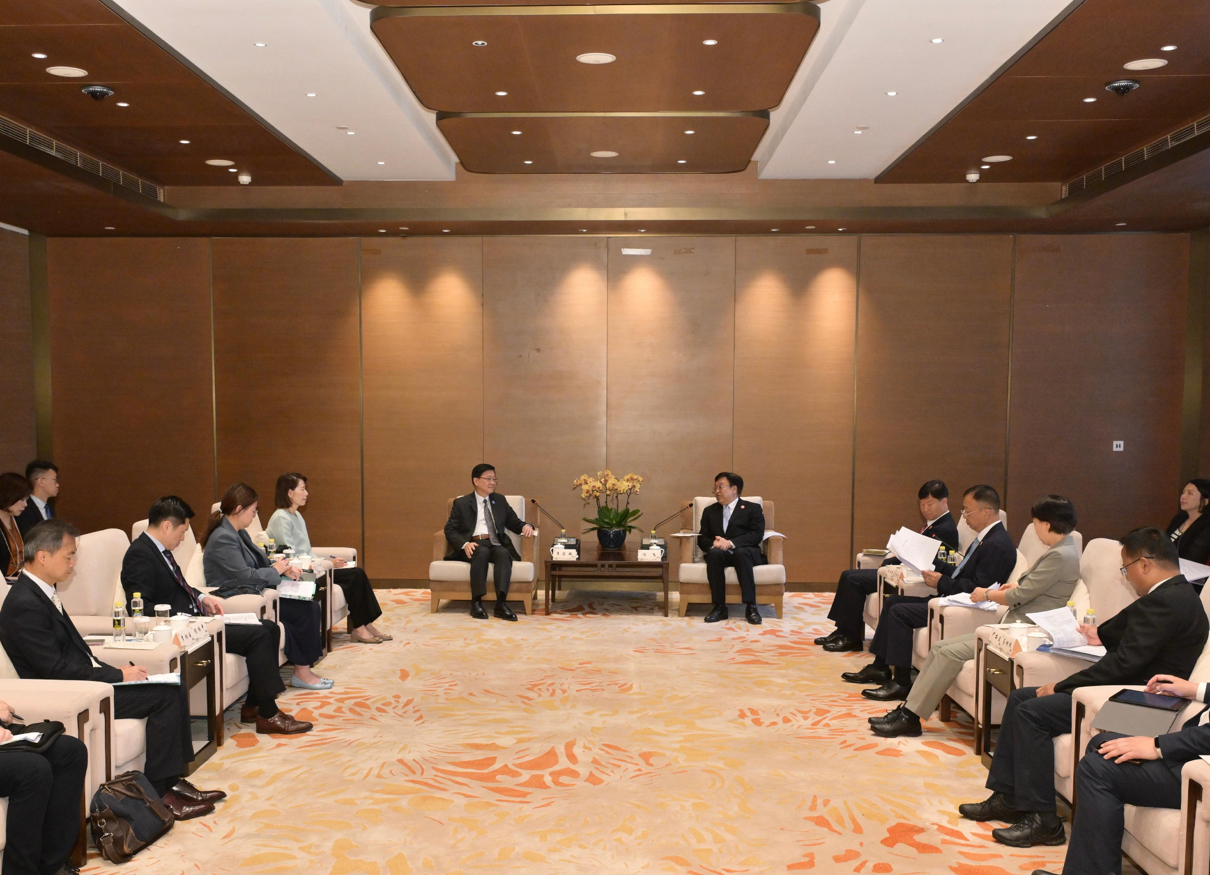 李家超指出,特區政府會繼續發揮香港在「一國兩制」下,擁有國家機遇及國際機遇的雙重疊加優勢,進一步推動粵港澳大灣區與海南自貿港聯動發展。他又說,已成立內地企業出海專班,通過專班下跨界別專業服務平台,服務包括海南的內地企業「走出去」,將國際資本「引進來」,共同促進海南自貿港發展,為國家高水平對外開放貢獻更大力量。