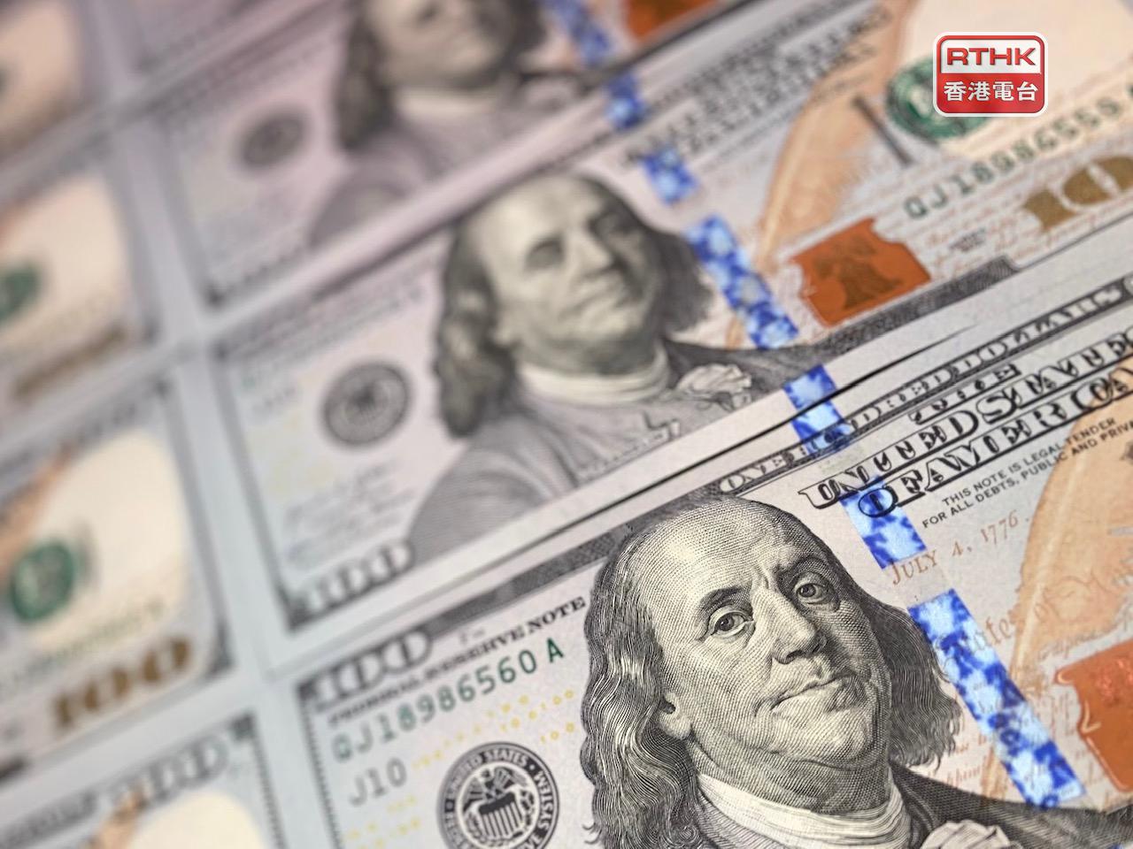 美元指數升穿100關口,報100.19,升幅0.3%。本周累計上升近1%。(港台圖片)