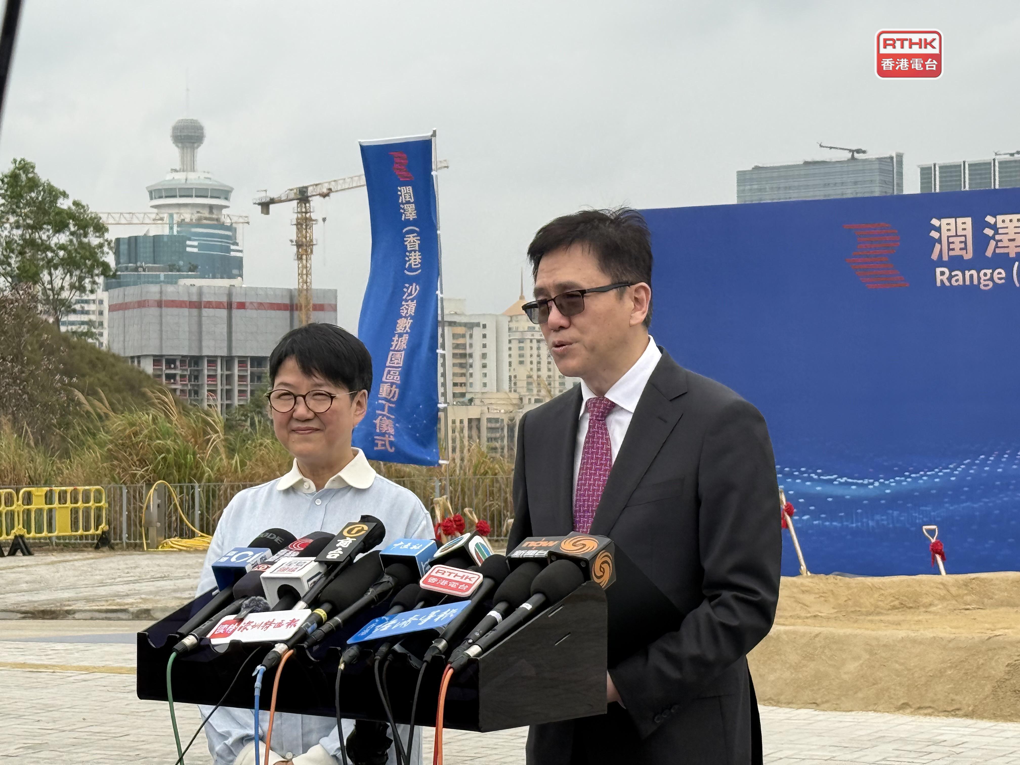 沙嶺數據園區用地中標企業香港潤江智算科技有限公司,早上在沙嶺舉行動工儀式。出席儀式的創新科技及工業局局長孫東致辭說,香港沙嶺數據園區項目的啟動,不單是香港創科發展的一個重要里程碑,更是北部都會區發展由藍圖邁向實景的關鍵一步,企業以真金白銀和實際行動,為這片創科熱土投下信任一票,成為發展香港首個高端數據園區的領航者,意義重大。