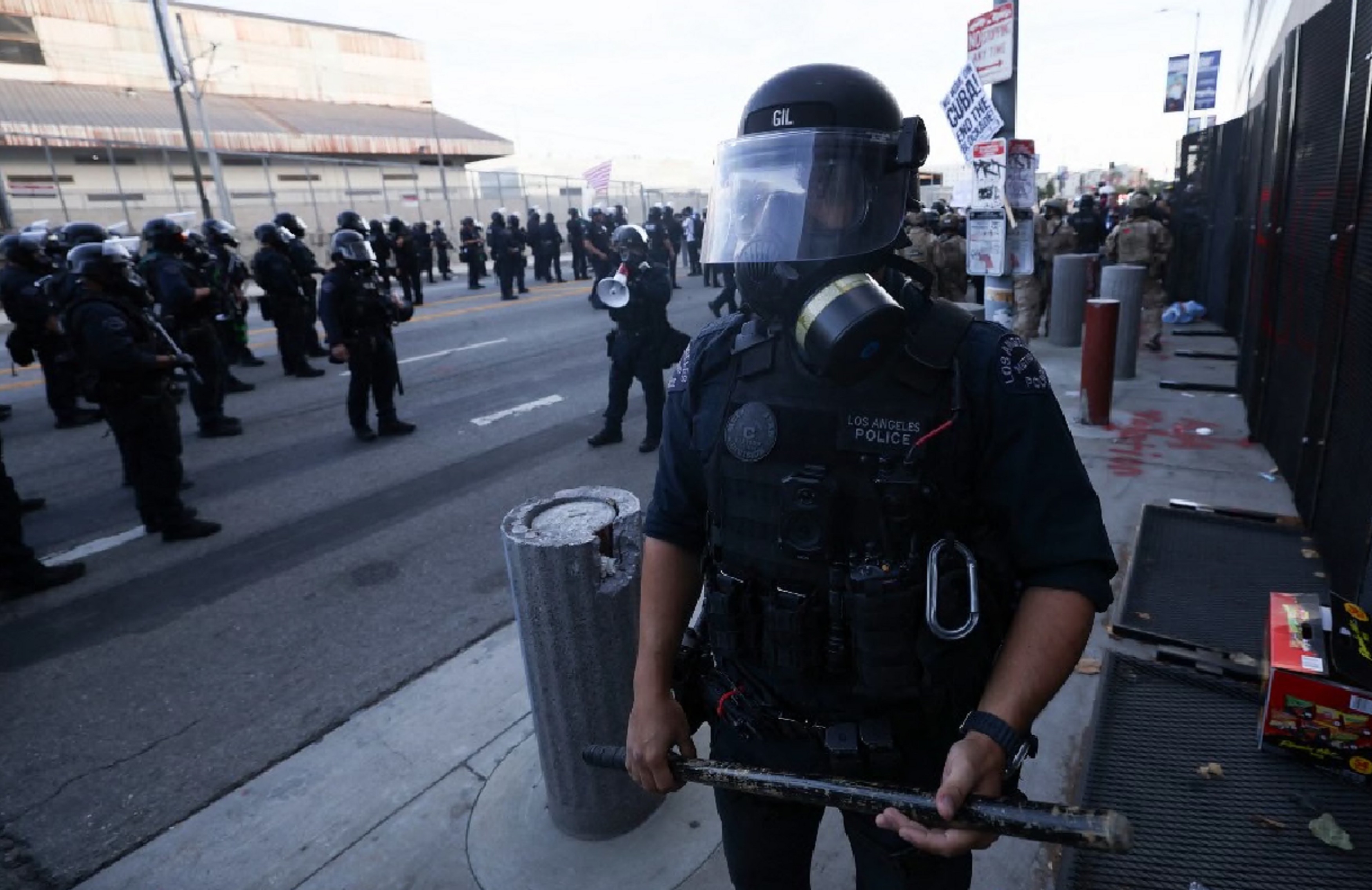 警方發言人指被捕者當中無受傷報告,一名警員就被輕微割傷及擦傷。洛杉磯警局在社交平台上發文指示威者在一處設施外,將大型混凝土塊、樽及其他物品投擲到圍欄內,隨後聯邦執法部門施放催淚氣體。