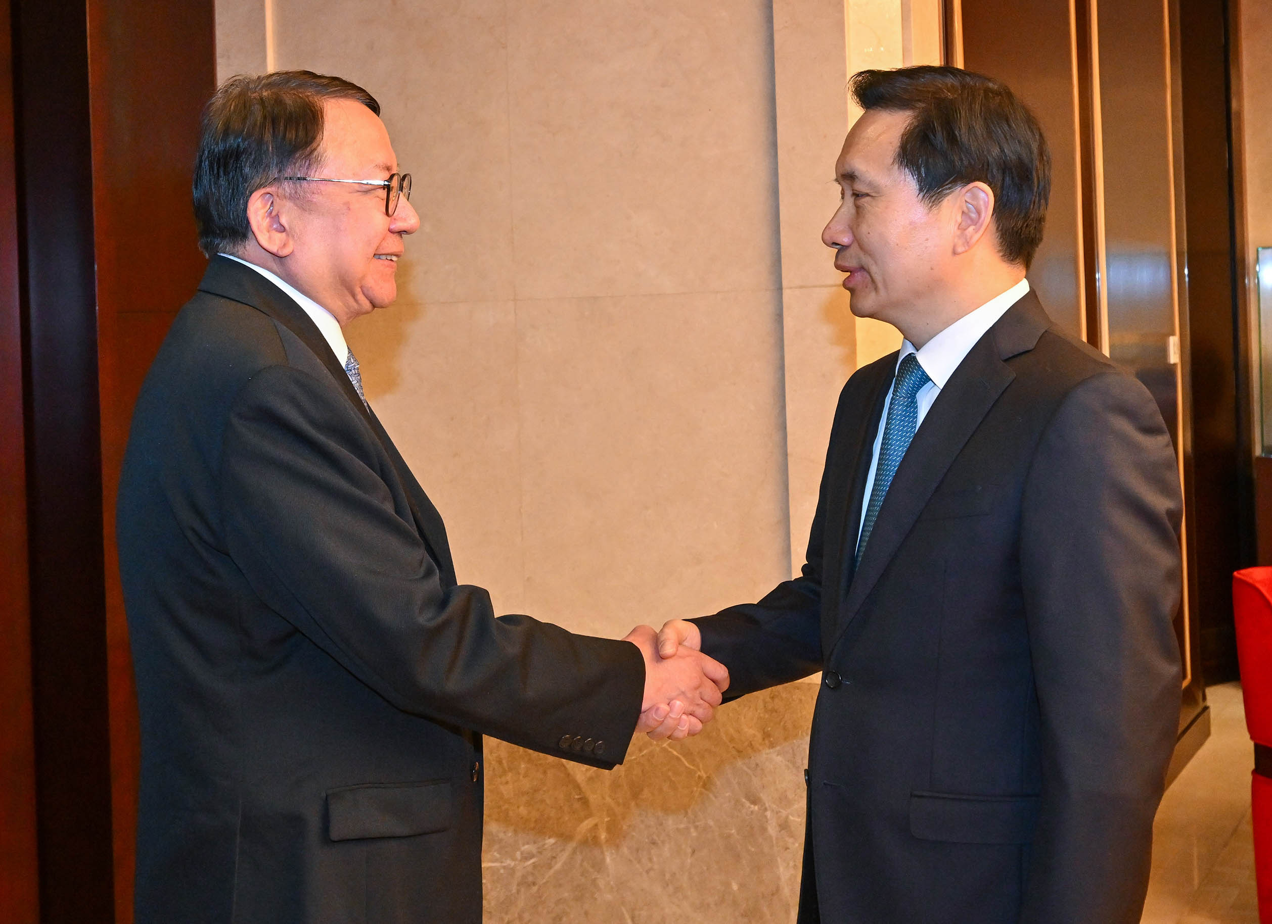陳國基昨日拜會陝西省委書記趙一德,就深化陝港兩地各方面的交流合作交換意見。中央港澳辦、國務院港澳辦分管日常工作的副主任徐啟方亦參加會面。陳國基指出,陝港雙方自2024年簽署《深化陝港交流合作協議》,以及一系列在法律服務、科技創新、教育、旅遊等領域的合作備忘錄起,在中央政府支持及陝港共同努力下,兩地交流合作成果豐碩,未來可在不同範疇,尤其是人文交流、教育合作、創新科技等方面加強合作,優勢互補。