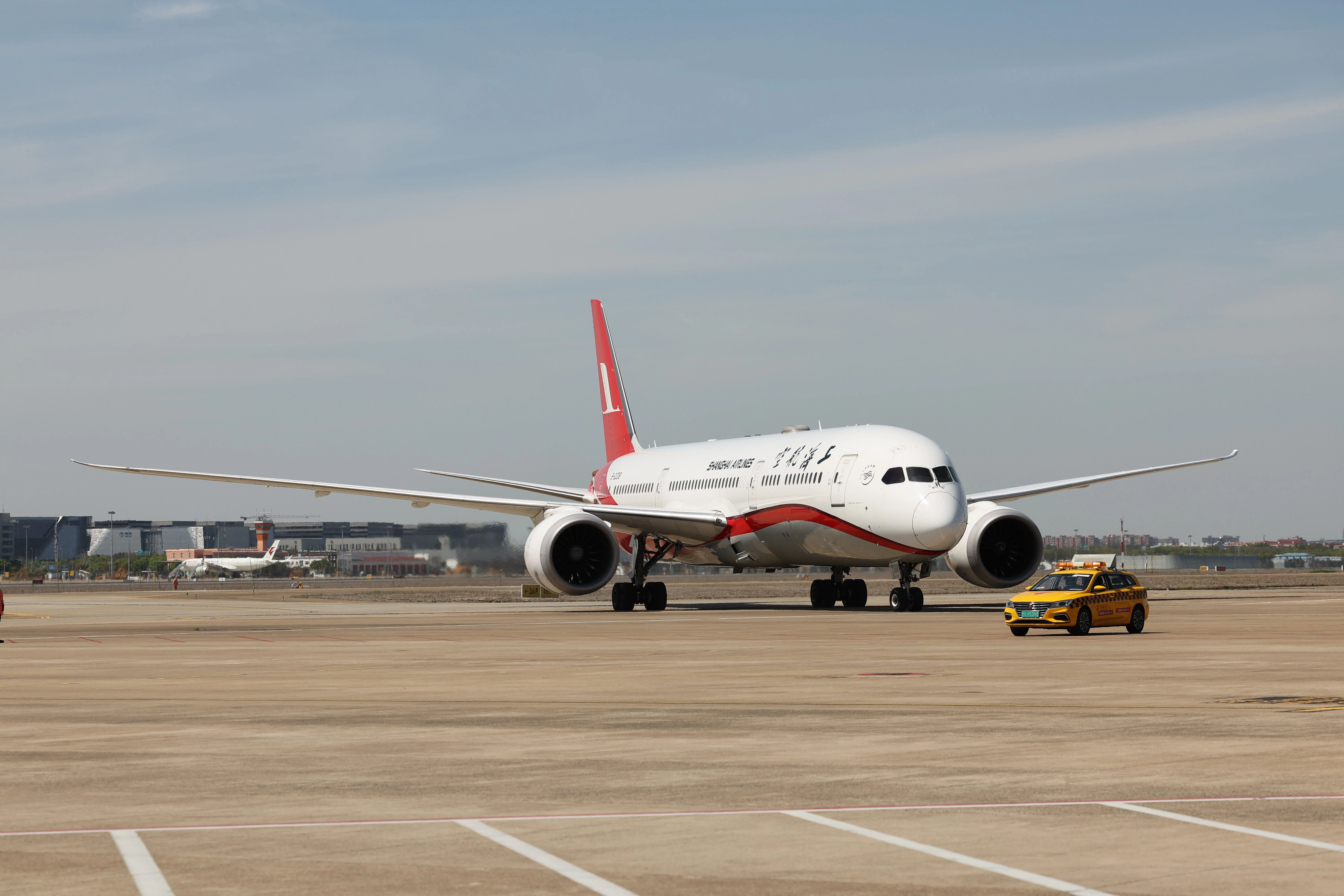 參訪團專機中午抵達上海虹橋機場。(新華社)