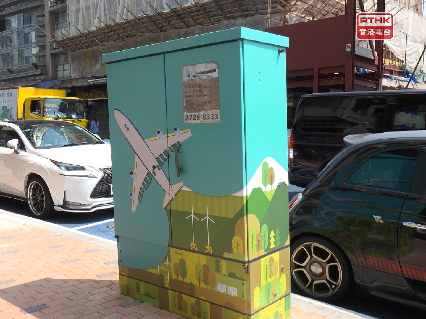 昔日飛機九龍城上空低飛的畫面,亦呈現在電箱外。(鍾家銘攝)