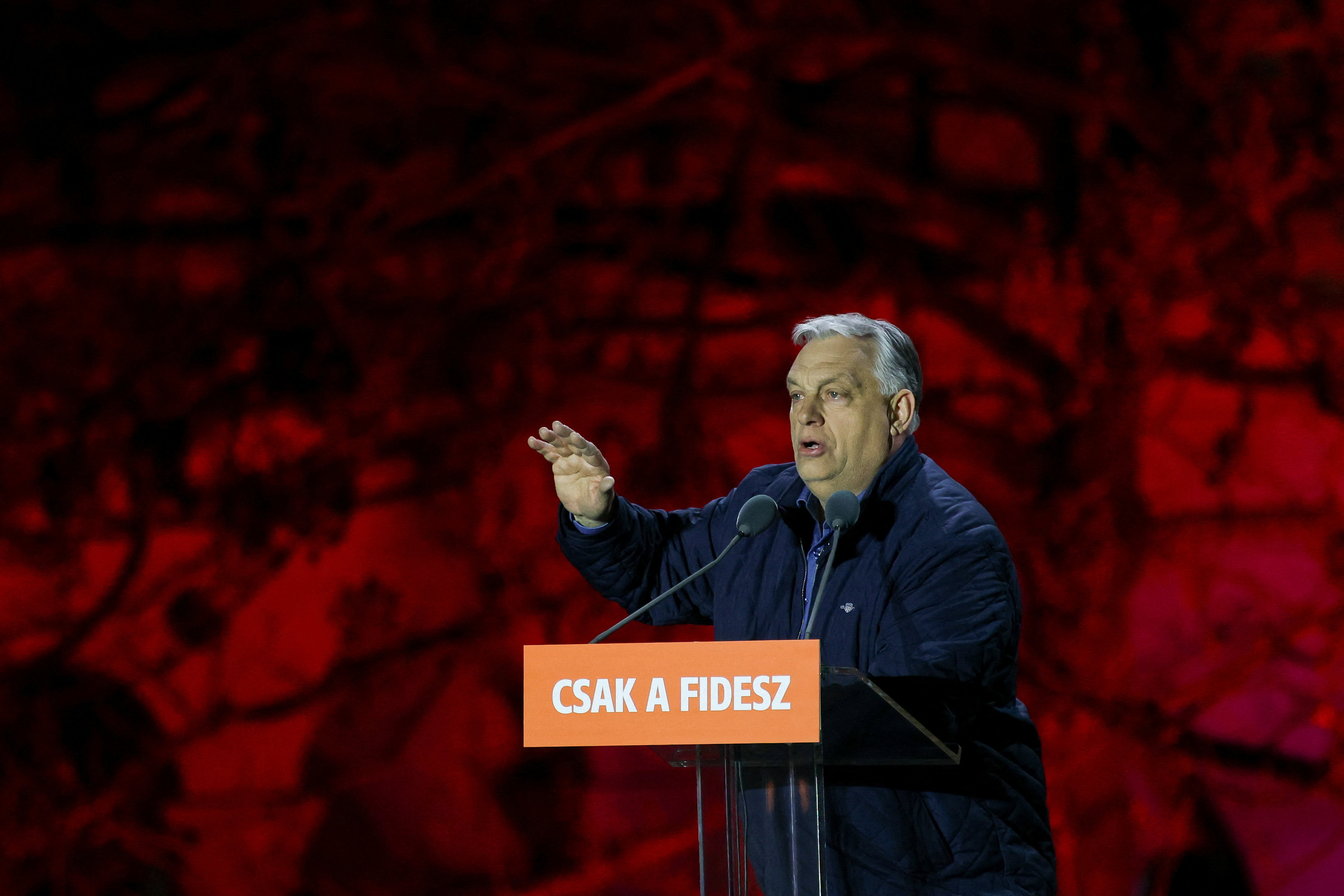 歐爾班在選舉前夕,於首都布達佩斯出席競選活動。(路透社)