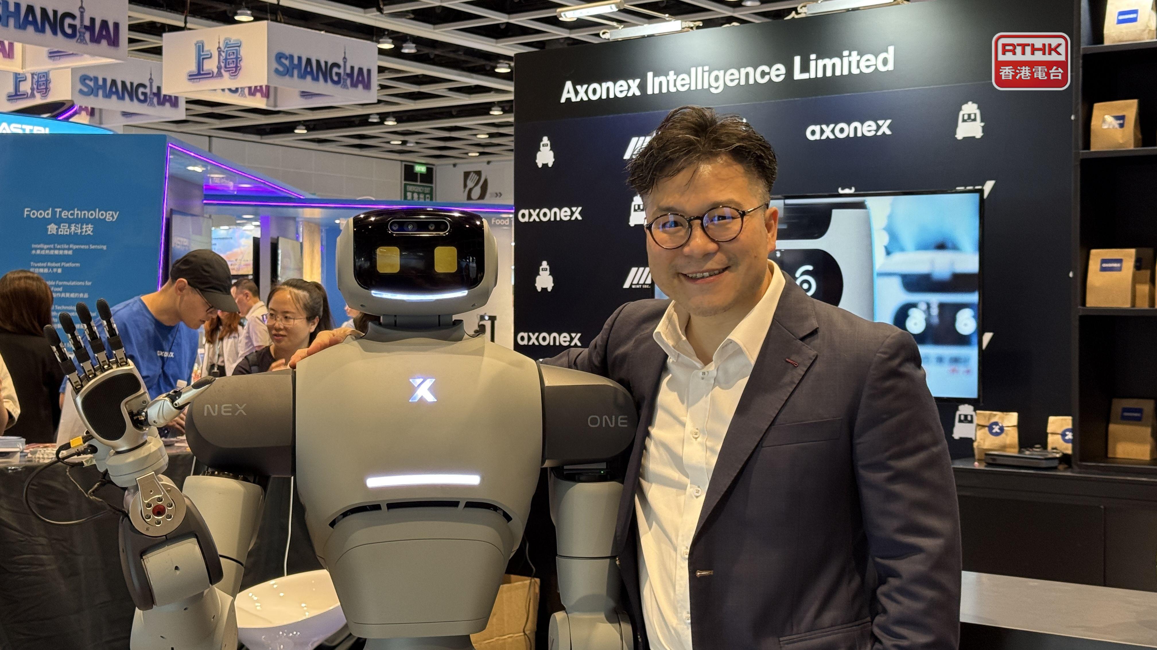 從事人工智能與機械人技術的香港企業Mint,旗下科技公司Axonex推出新研發的半人型機械人。Mint董事會主席兼行政總裁陳海龍表示,全人形機械人研發難度高,公司為小型團隊,而且半人型機械人操作安全系數較高。