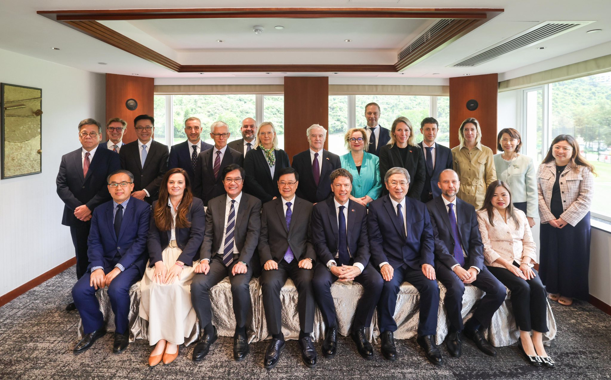 行政長官李家超聯同多名司局長,與歐盟駐香港辦事處主任及眾多歐盟成員國駐港總領事午餐,就經濟和發展等議題交換意見,增進了解和探討更多合作空間。