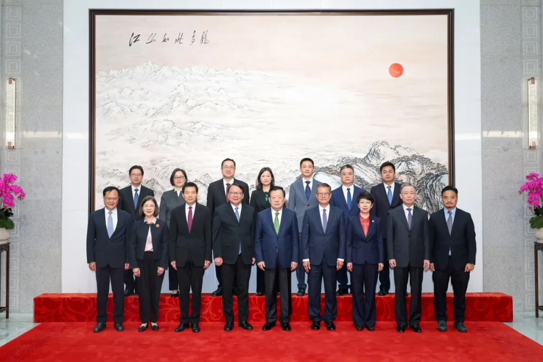 中央港澳辦主任、國務院港澳辦主任夏寶龍,今日上午在北京會見政務司司長陳國基、財政司司長陳茂波、政制及內地事務局局長謝小華等特區政府官員,就香港主動對接國家「十五五」規劃、融入和服務國家發展大局座談交流。