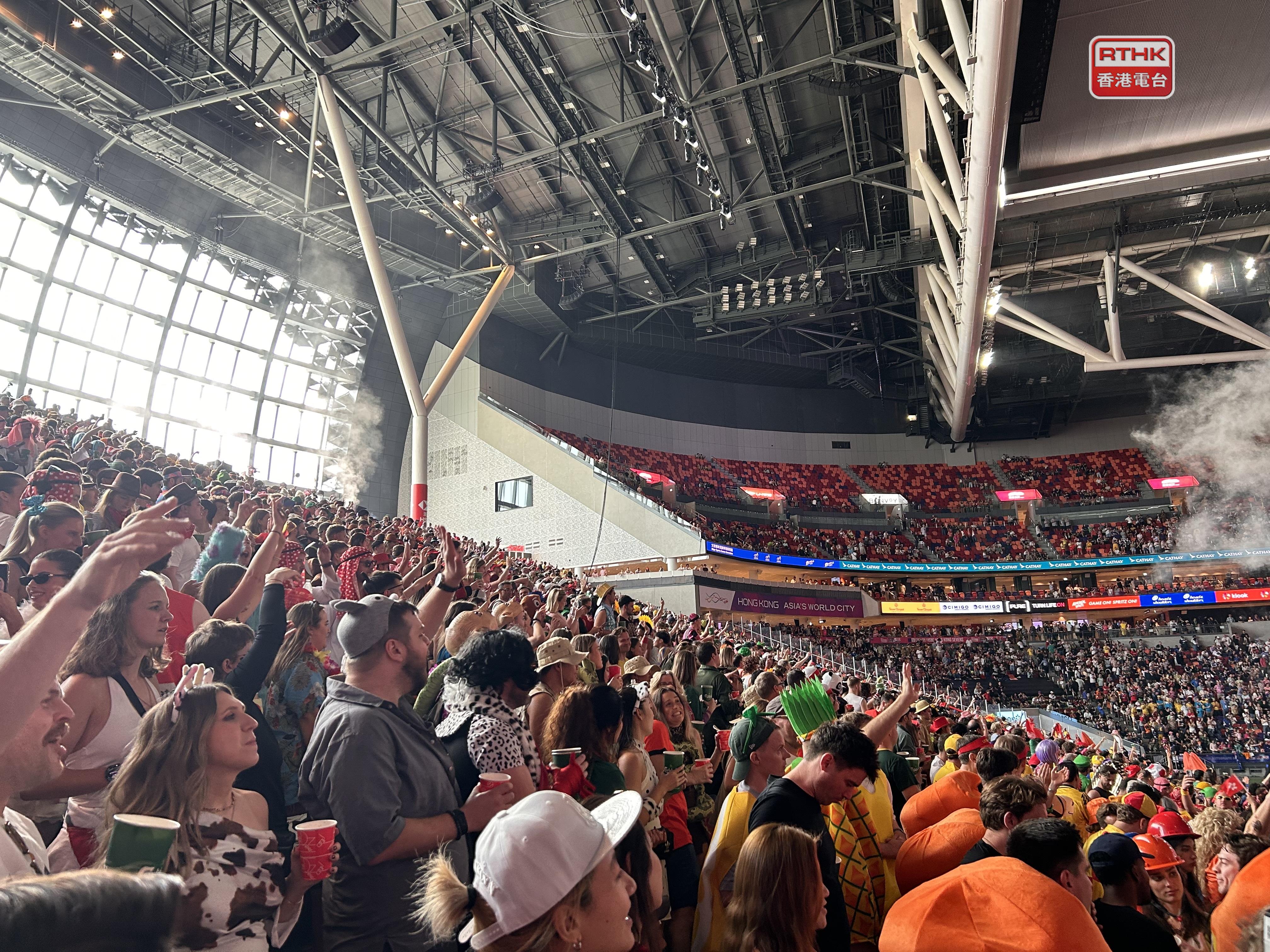 香港國際七人欖球賽第二日,啟德體育園主場館氣氛非常高漲。(林漢山攝)